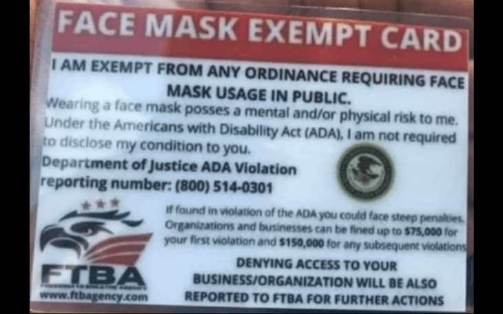 DOJ: Face Mask Exemption Cards Are Fake