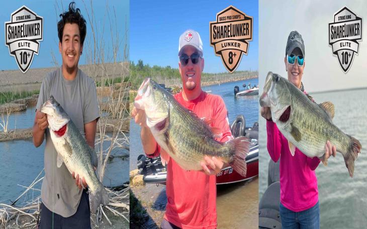 Shawn Campbell, Daniel Hernandez, and Natalie Houston recently made significant contributions to the Texas Parks and Wildlife Department's (TPWD) ShareLunker program by submitting large bass catches.