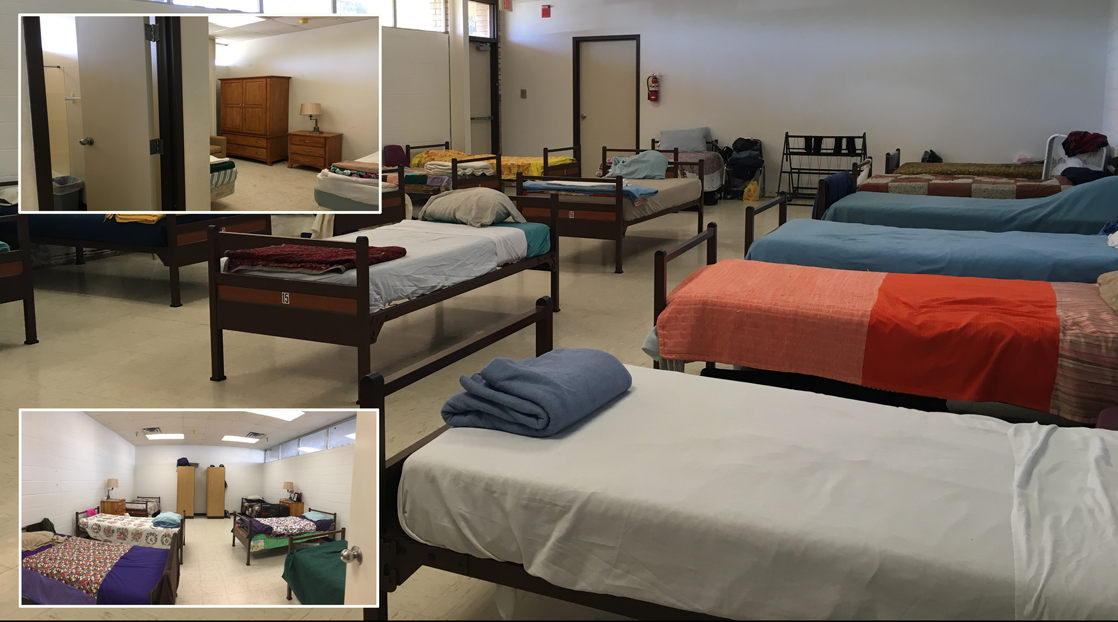 Above: Main Photo: The Men's Dormitory, Top Photo: A Family Room, Bottom Photo: The Women's Dormitory