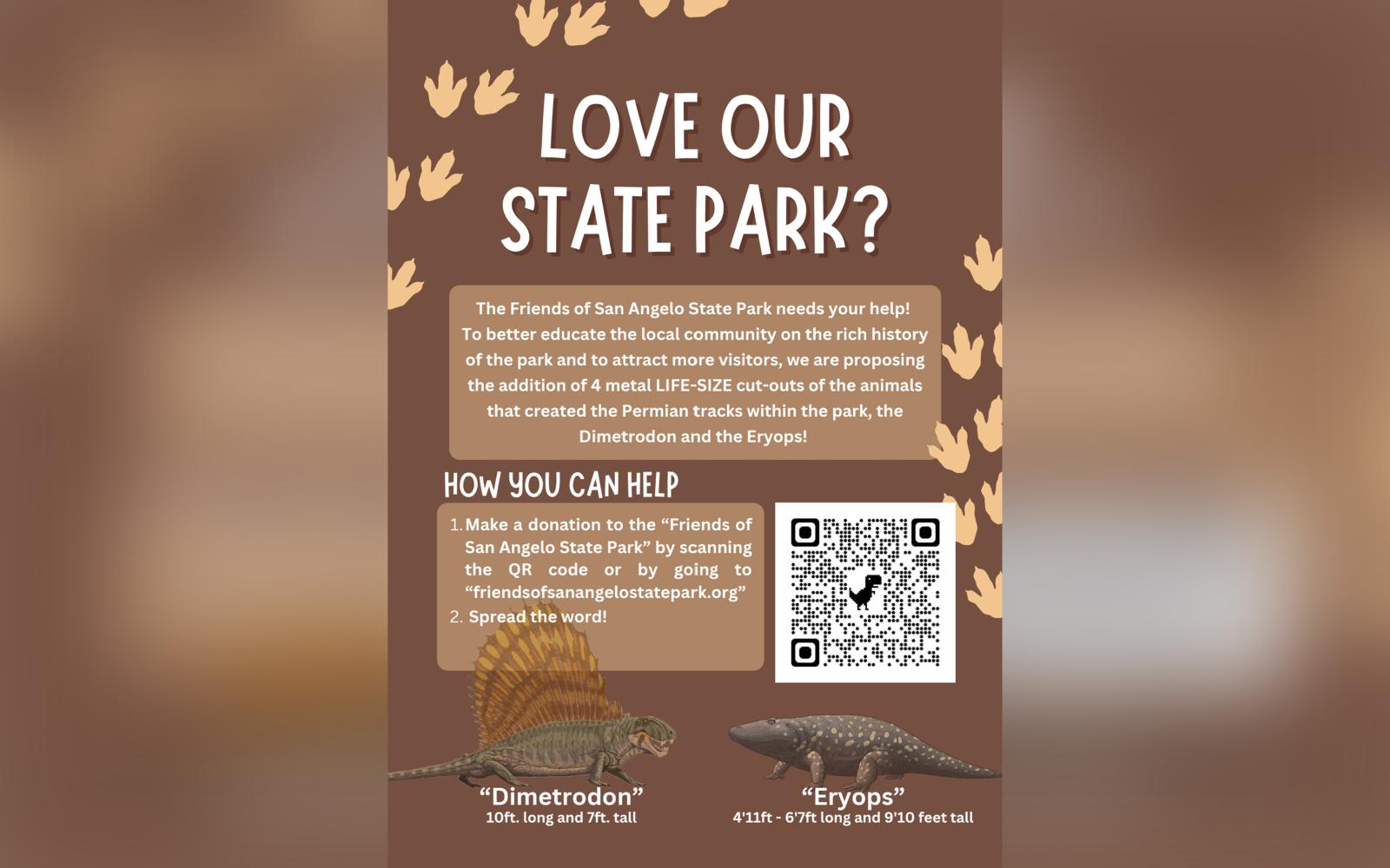 SAN ANGELO, TX — The Friends of San Angelo State Park has launched a fundraising campaign to enhance educational and visitor experiences through the addition of life-size metal cut-outs of prehistoric animals.