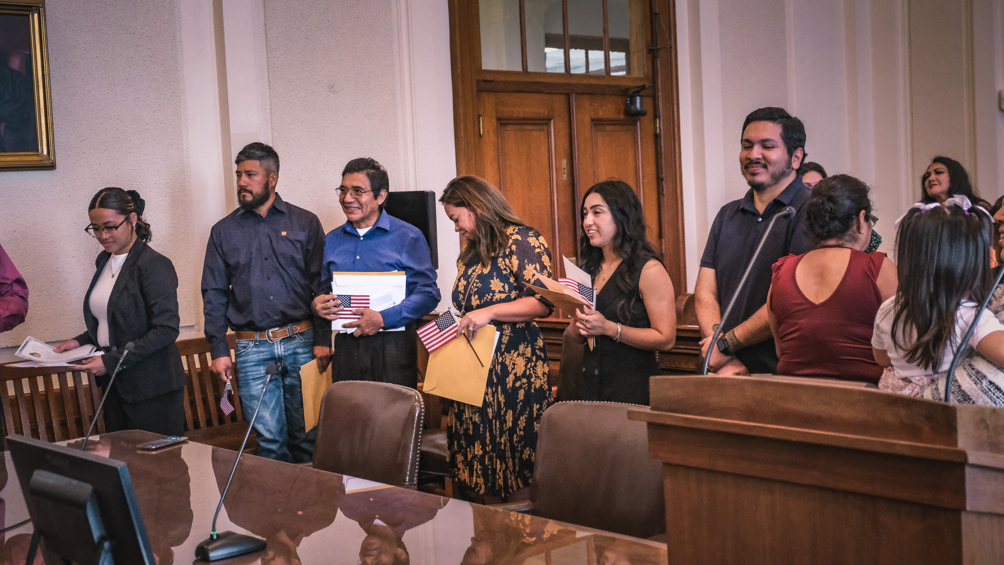 The ceremony concluded with Parker encouraging the new citizens to actively engage in democracy.