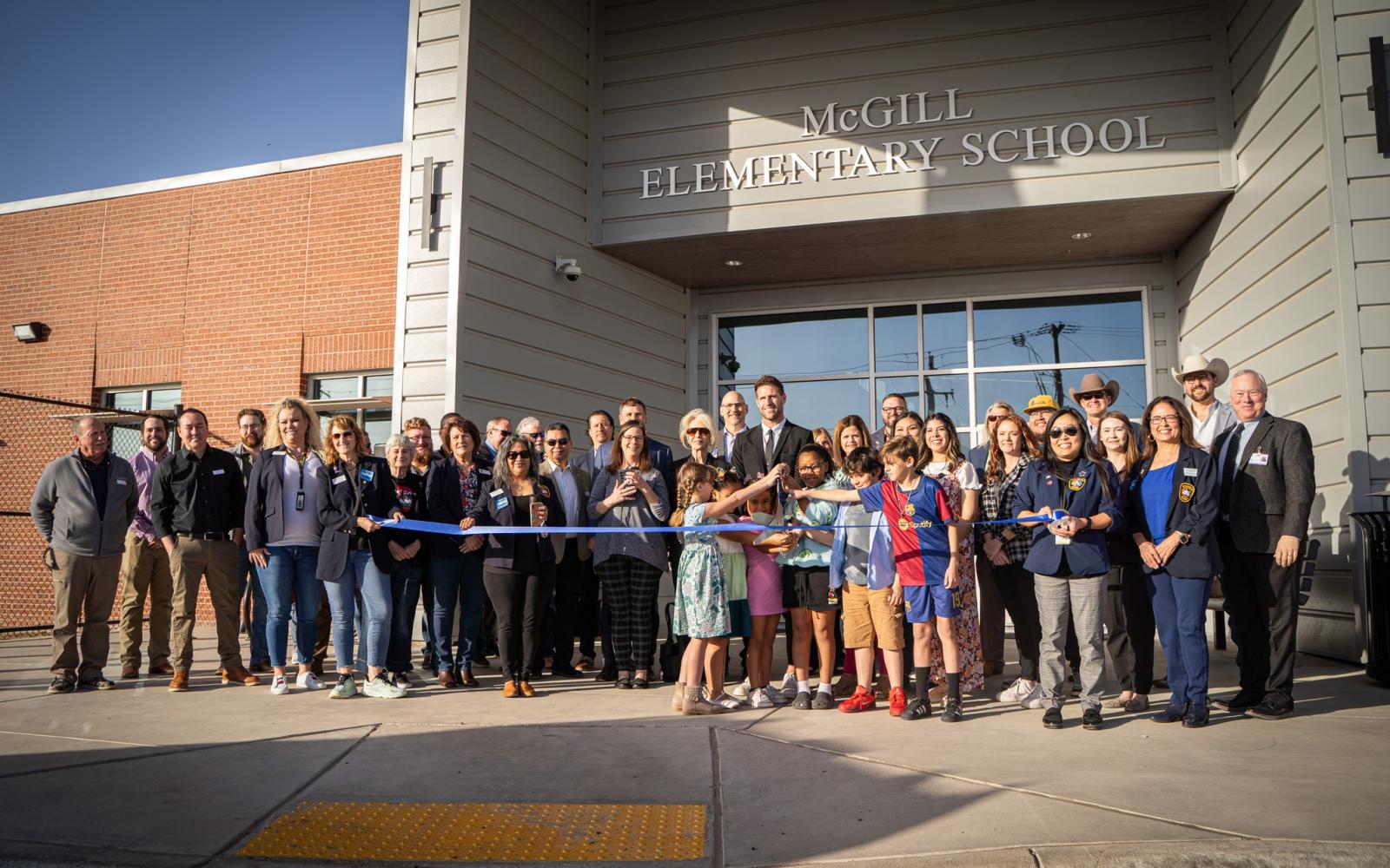 The expansion, which combines McGill and Austin Elementary Schools into one campus, includes 15 new classrooms, a cafeteria, additional restrooms, a new entryway, and updated pick-up and drop-off areas.