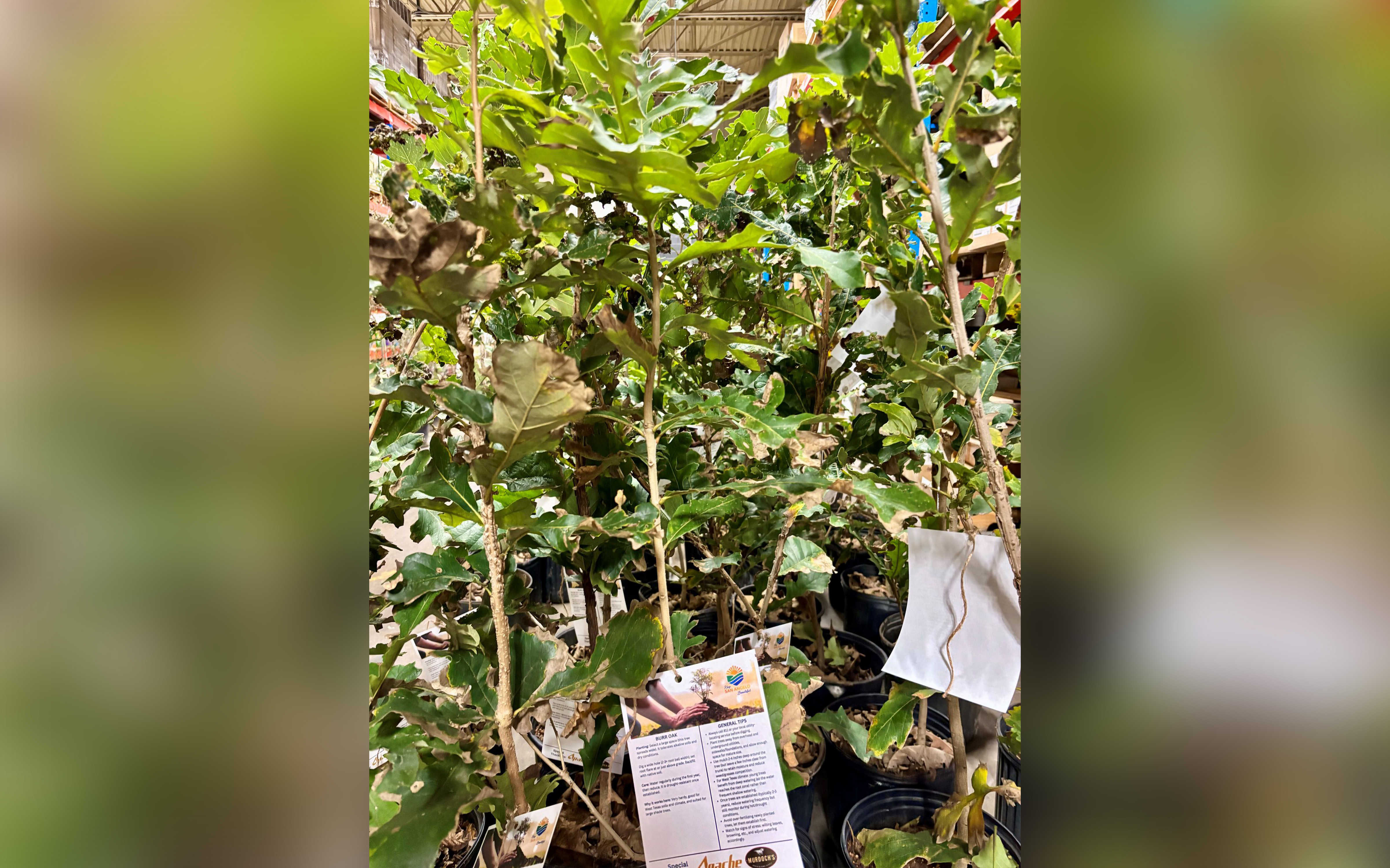 Varieties available include native species such as Live Oak, Red Oak, Burr Oak, Cedar Elm, Red Cedar, and Bald Cypress.