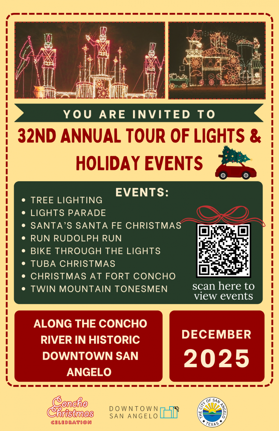 Everything begins on Friday, December 5, with the Tour of Lights Soft Opening, giving everyone an early chance to enjoy the glowing displays along the Concho River.