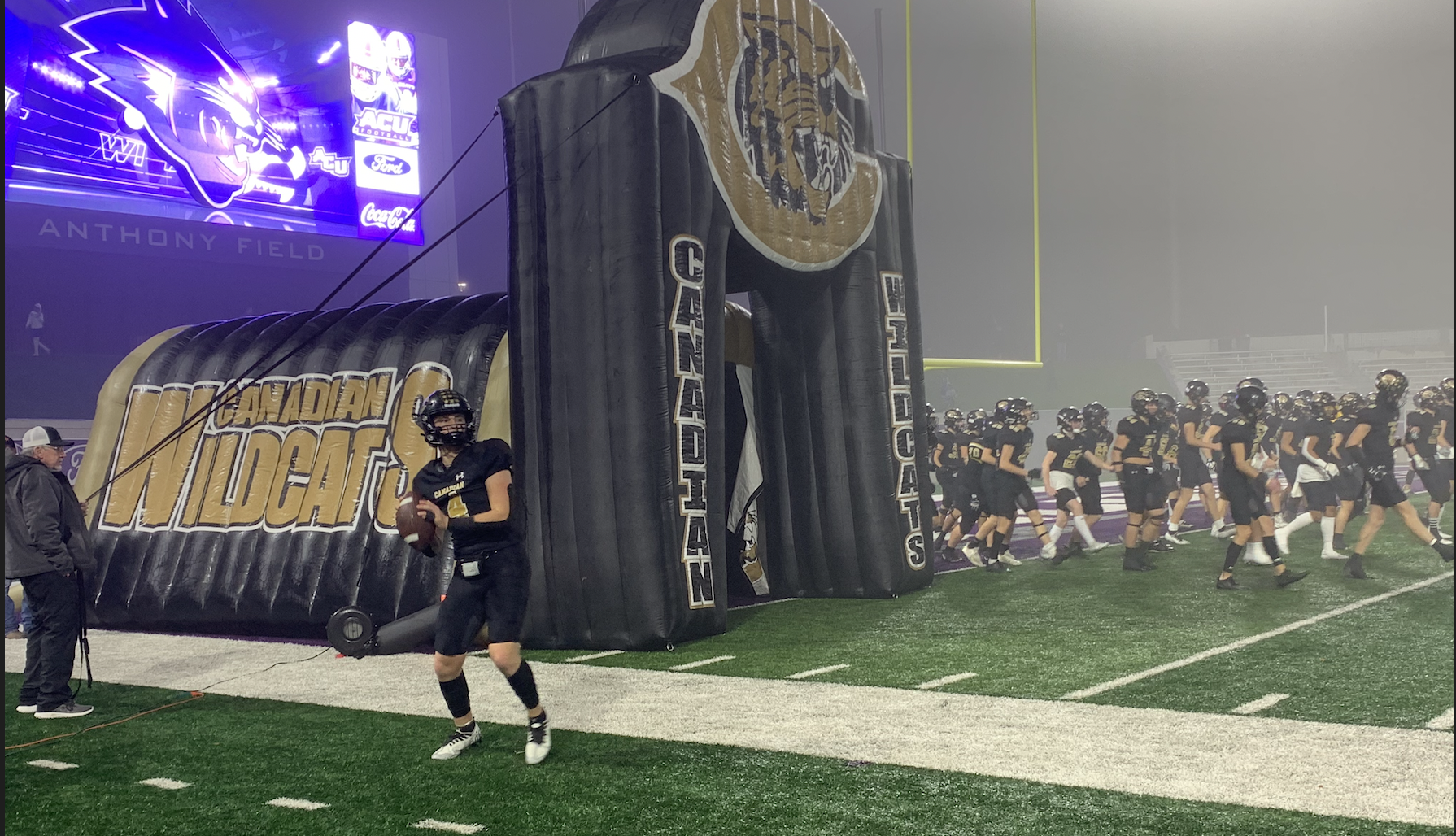 Canadian responded to the Tigers’ score with 6:16 remaining in the 4th quarter. Canadian’s Quarterback Camren Cavalier led the Wildcats on a 9-play, 76-yard drive. Runningback Luke Flowers snapped off a 26-yard run to get the Wildcats to midfield. Then, Cavalier hit Wide Receiver Preston Miller deep down the sideline for another 30 yards.