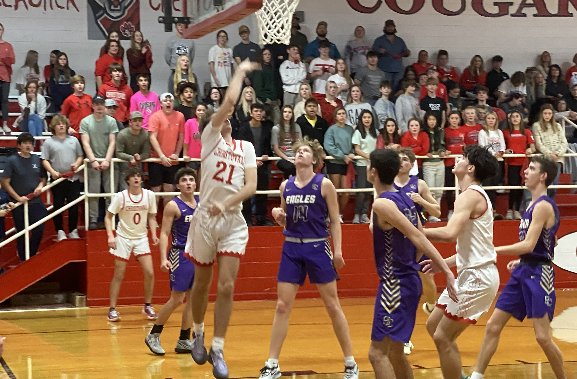 After the Lady Cougars downed the Lady Eagles the Cougars and Eagles took to the hardwood, entering the game undefeated in district play.