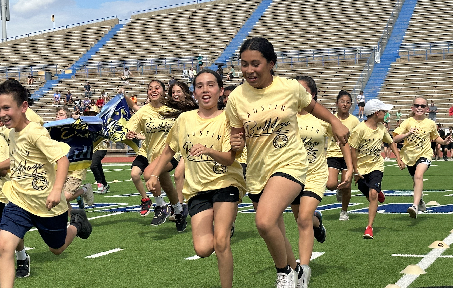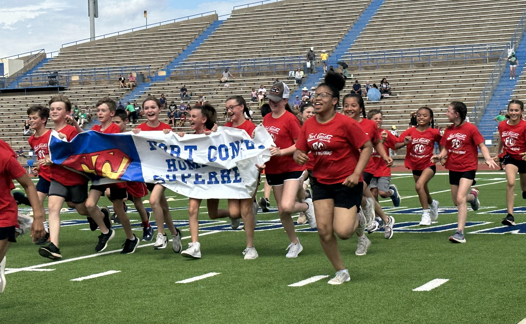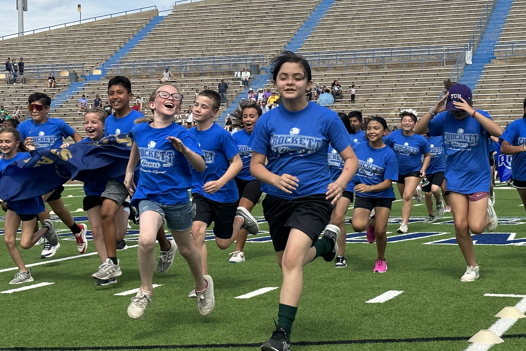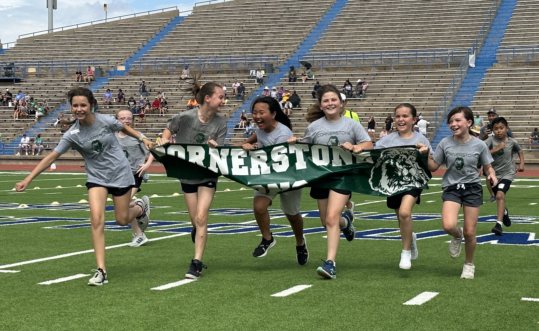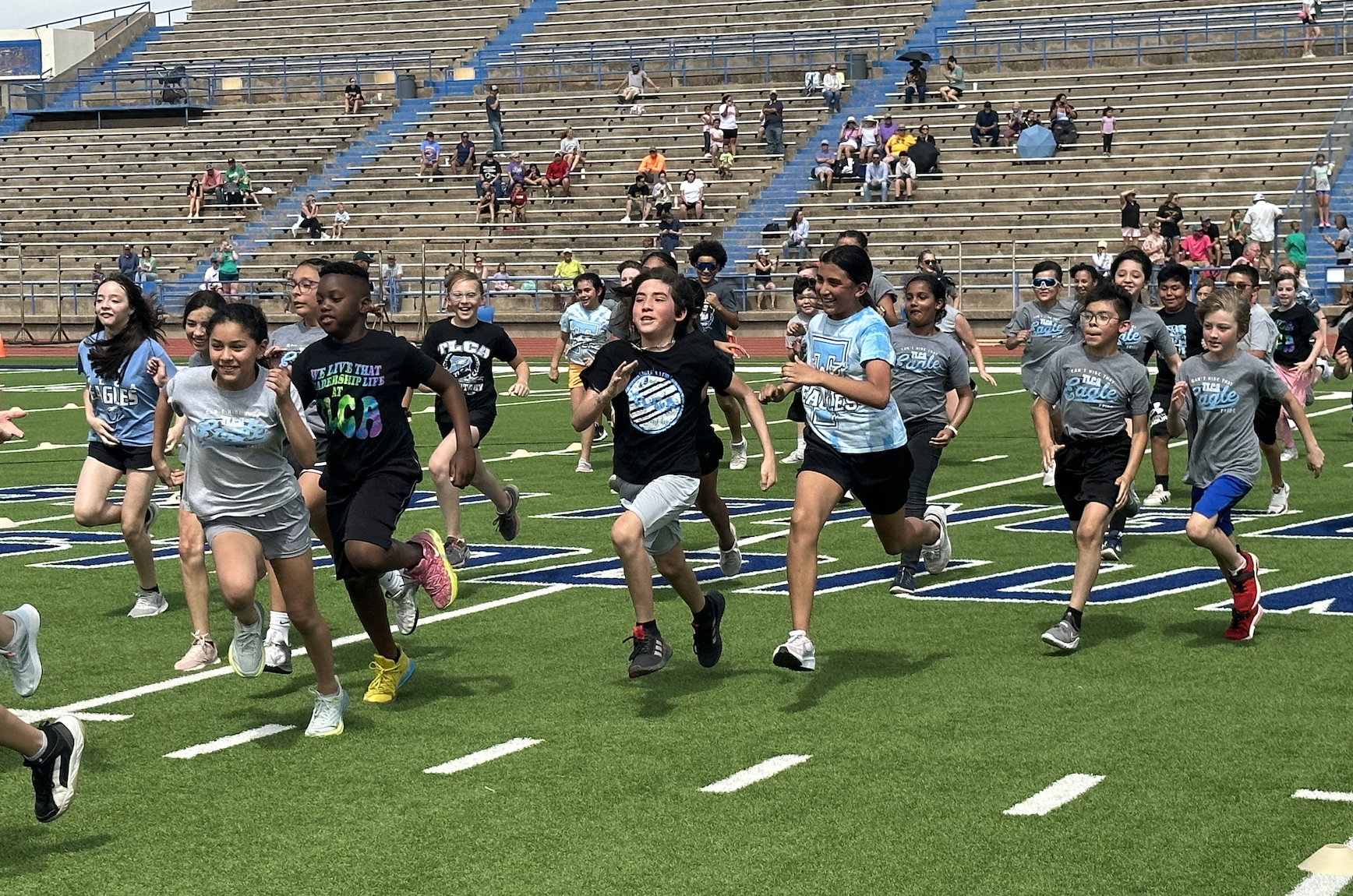 Before the lightning ultimately ruined the fun, the students and their teachers gathered on the track to represent their schools. They carried their school’s flags around the track before they ran together across the football field during the opening ceremonies. After that, field events began. There were more than just San Angelo schools present. Wall, Christoval, Miles, Veribest, and Grape Creek also sent their elementary schools to San Angelo Stadium.