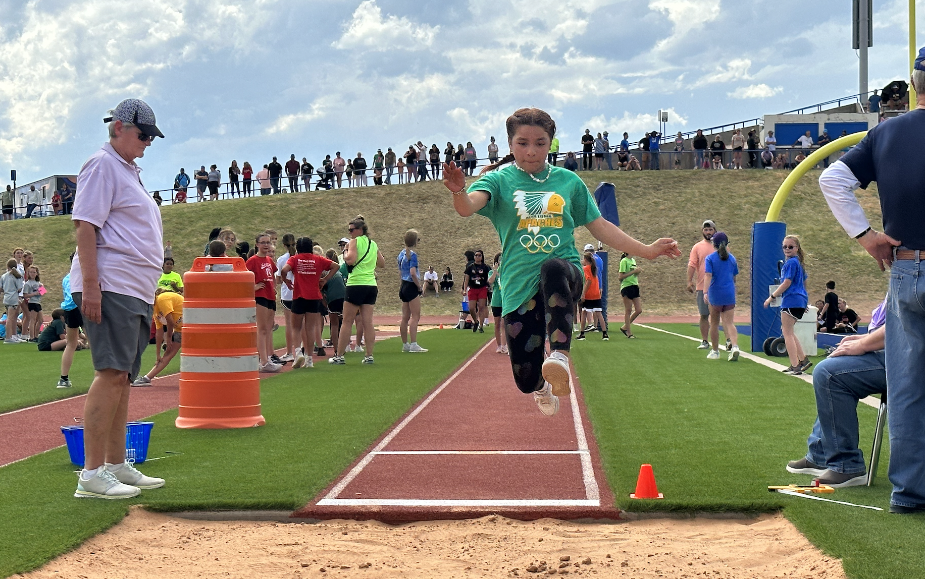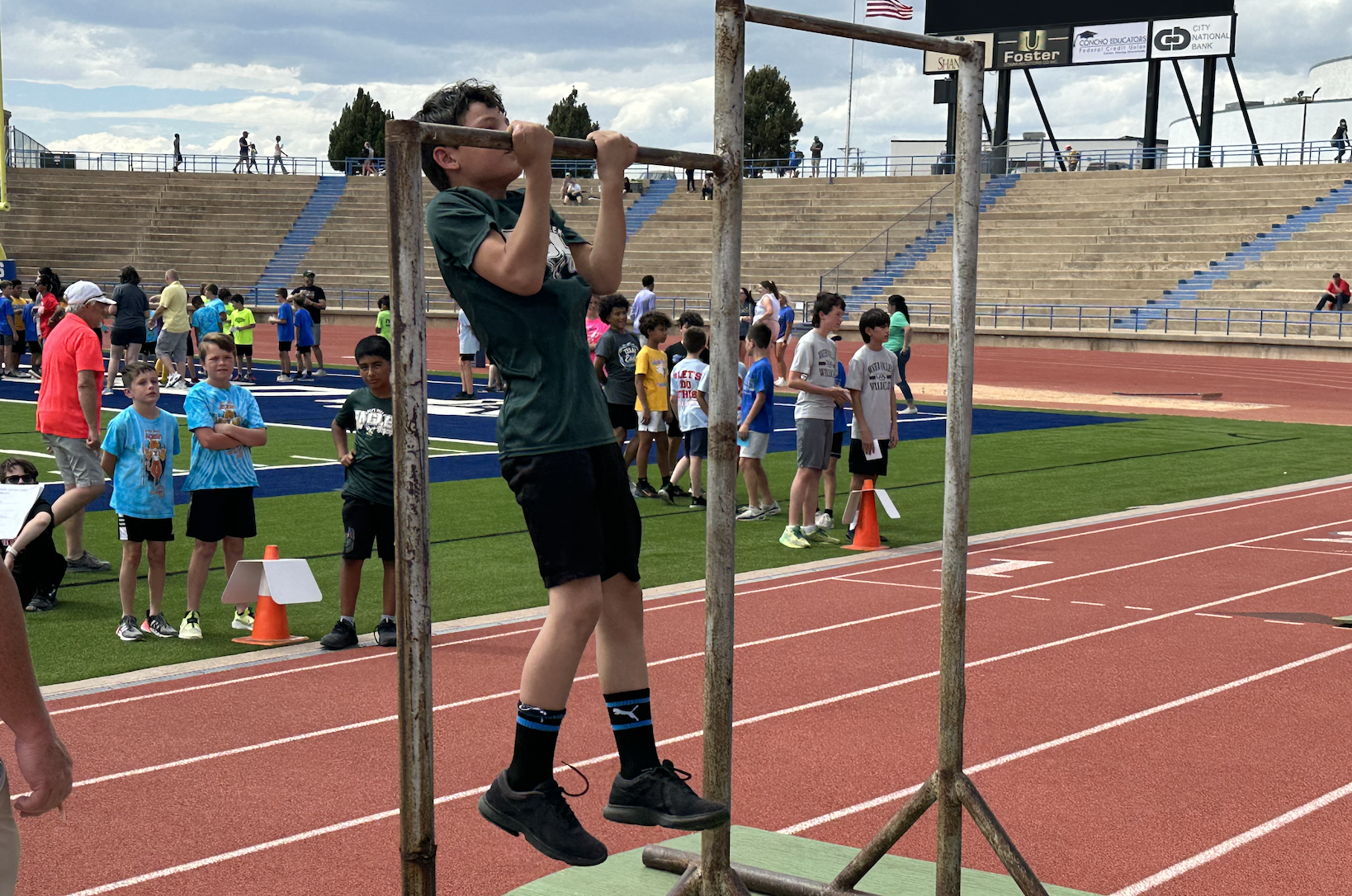 Several schools participated in the flexed arm hang, chin-ups, and long jump before the weather moved in. After the officials detected lightning within 10 miles of the stadium, the Kiwanis Club called off the Little Olympics. Although it was unfortunate that the competition ended early, the kids still had the opportunity to gather together and represent their schools.