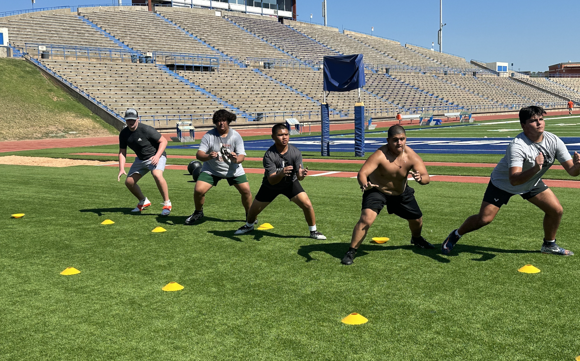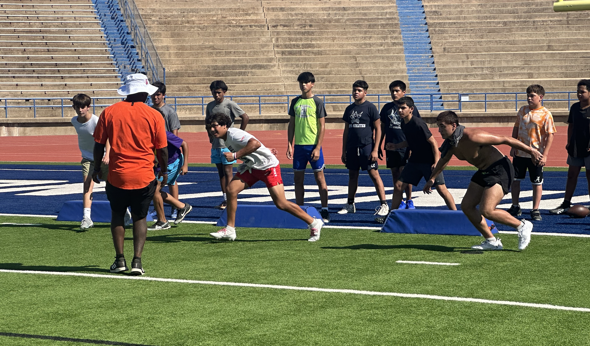 The middle schoolers definitely looked to be working hard. High temperatures couldn’t stop the runningbacks from hitting the holes, receivers from sprinting down the field, and quarterbacks from practicing precision and deep throws. Defensively, linebackers, safeties, and corners practiced making reads and form when dropping into coverage. Lastly, the big boys learned where and how to line up before working on explosiveness and footwork.