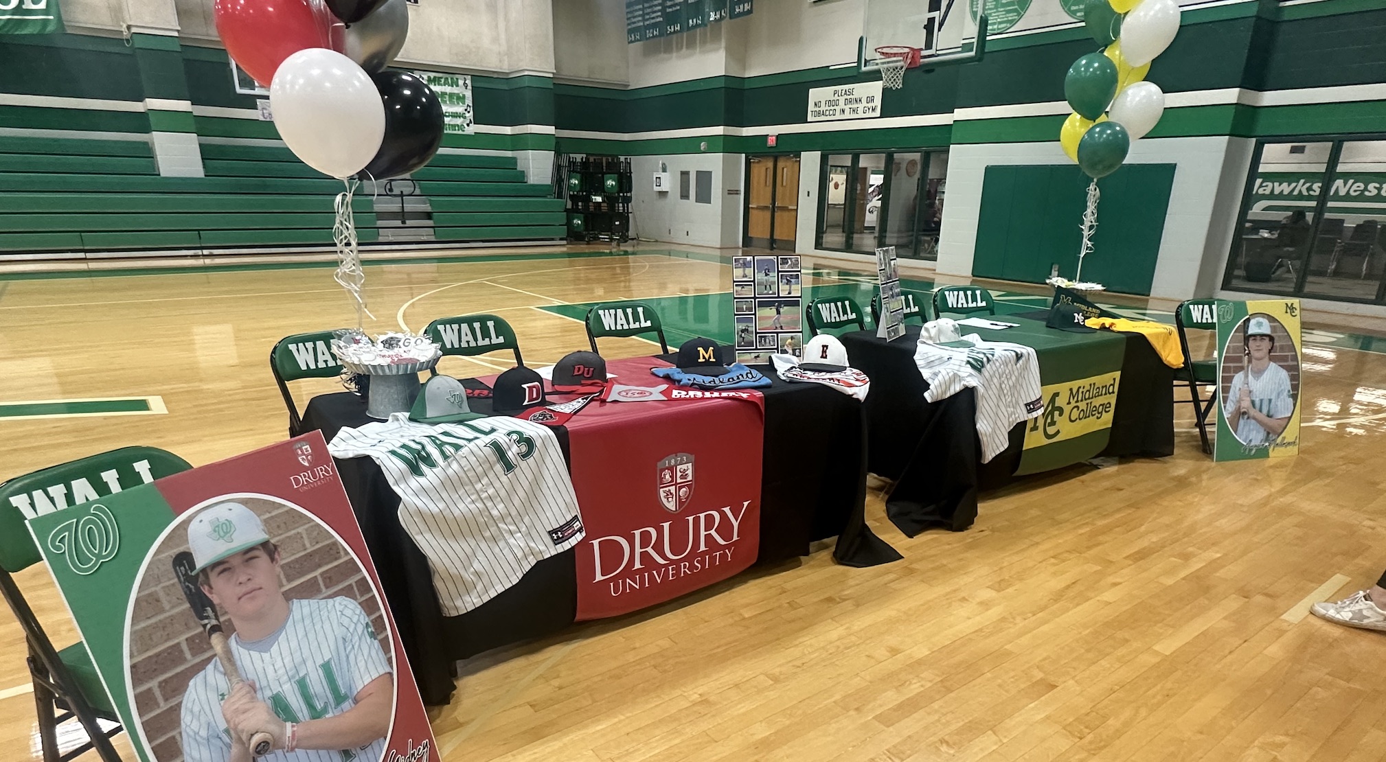 WALL, TX — Two Wall Hawks took the next step in their athletic journeys on Thursday, November 9, as Dylan Gidney and Augden Hallmark signed to play baseball at the next level. Surrounded by friends, family, teachers, and coaches, the two young ball players held a small gathering in Wall’s gymnasium on Thursday afternoon to celebrate the occasion.