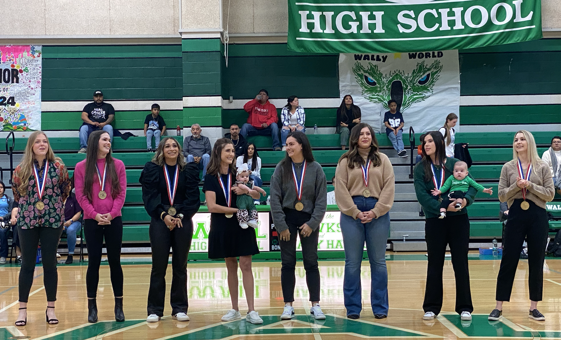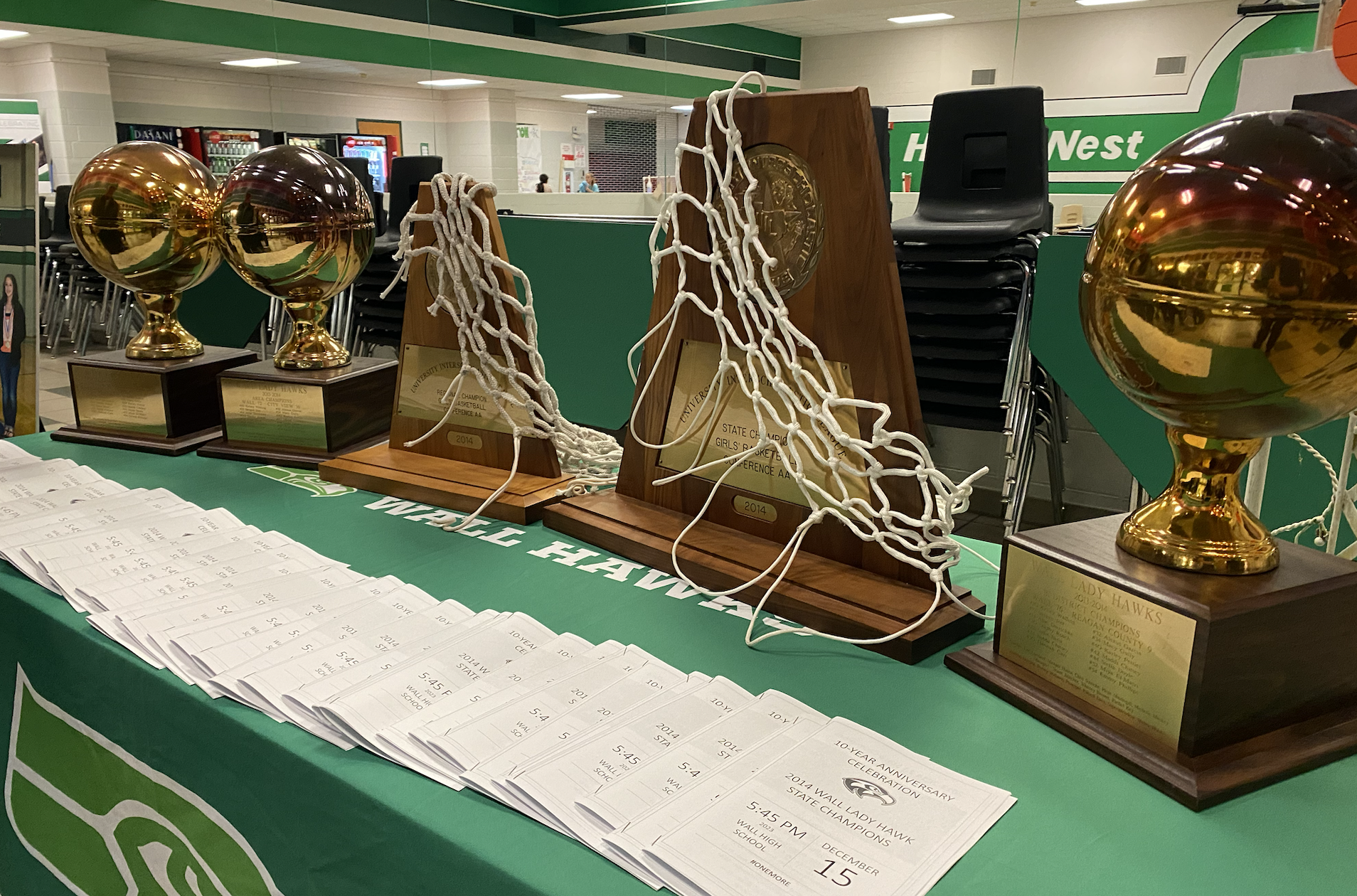 Before the district matchup between the Lady Hawks and the TLCA San Angelo Lady Eagles, the Wall community showed up at the gym to celebrate the 10-year anniversary of the Lady Hawks first state title from the 2013-2014 season. That year, Wall went 35-4 under then head coach Tate Lombard. The playoffs that season went as follows:
