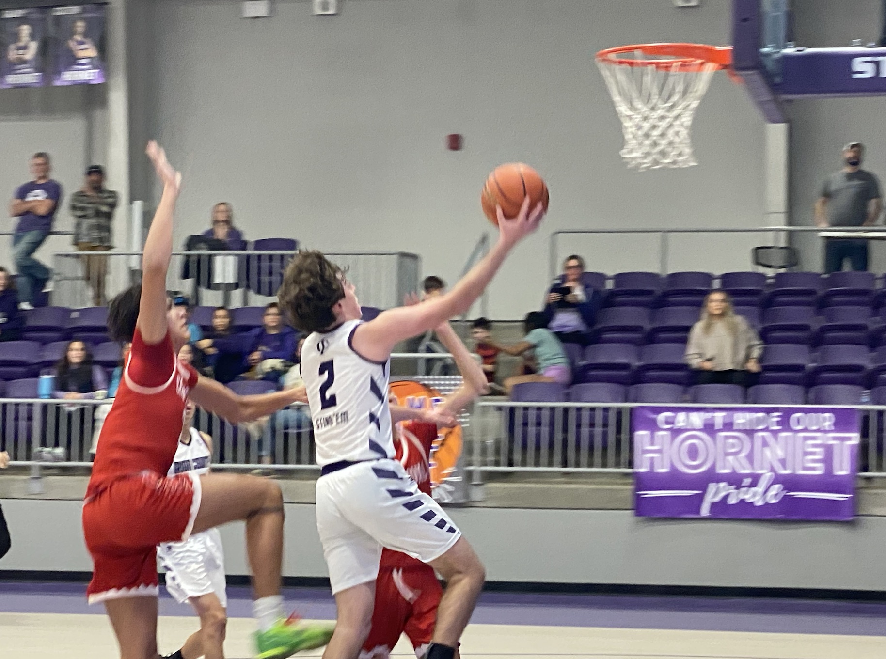 Coming out for the third quarter, the Hornets threw up a solid 10 points, five from Morris, three from Davis, and two from Xhemelji. The Cougars roared back with 15 points and claimed the lead from the Hornets, at home, in the Hive. Camdin Balderas and Garrett Thompson hit three three-pointers combined then Busch, Cooper, and Isreal Bogs all added two points each. Now the Cougars held a one-point lead over the Hornets, 32-31.