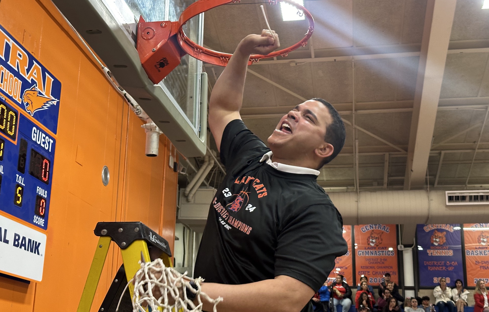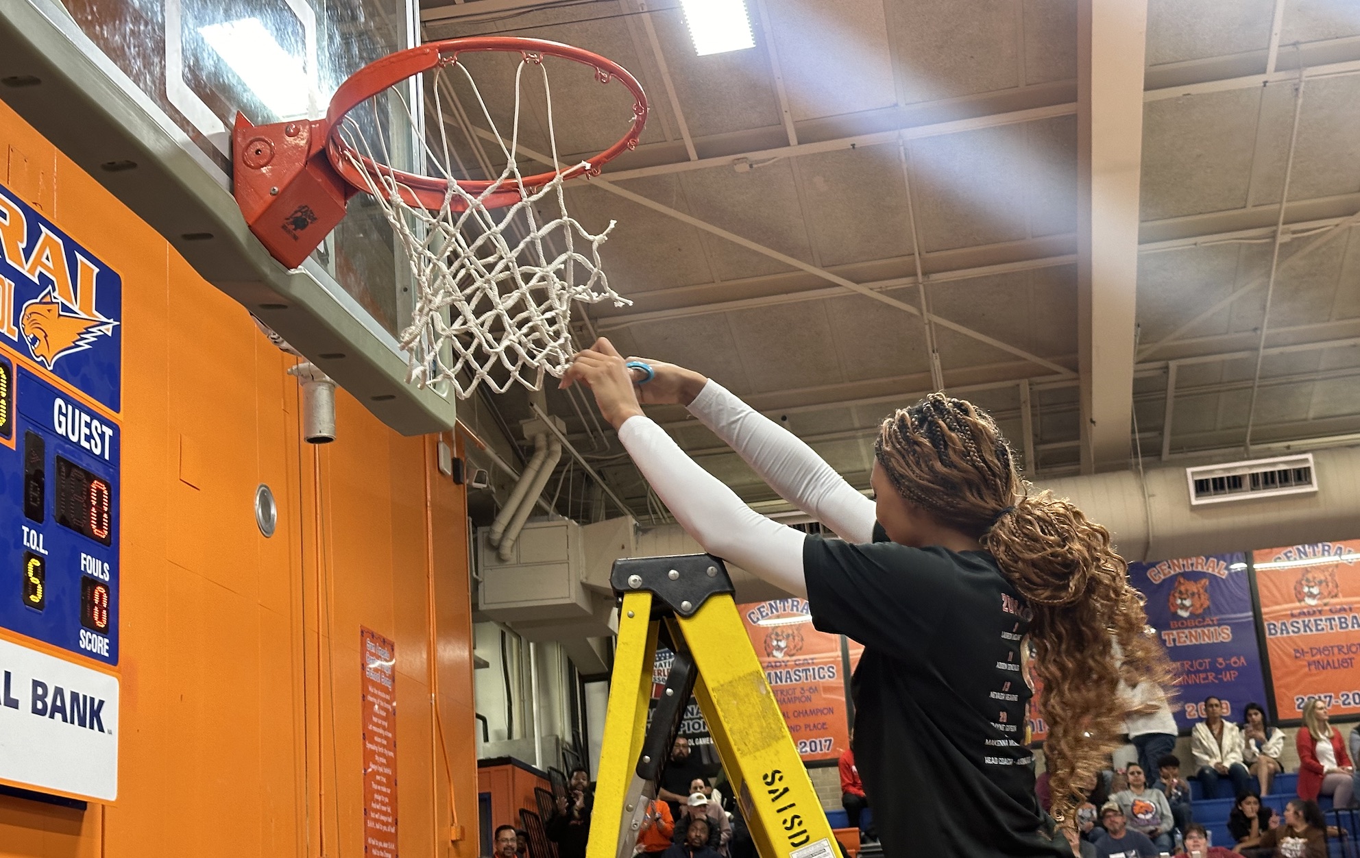 The Lady Cats looked elated after the game and during the trophy celebration. Each team member took turns cutting a piece of the net off of one of the baskets to commemorate the occasion. The last to go was Coach Geter. The Lady Cats' head coach took the rest of the net down as a reminder of all the Lady Cats accomplished this season.