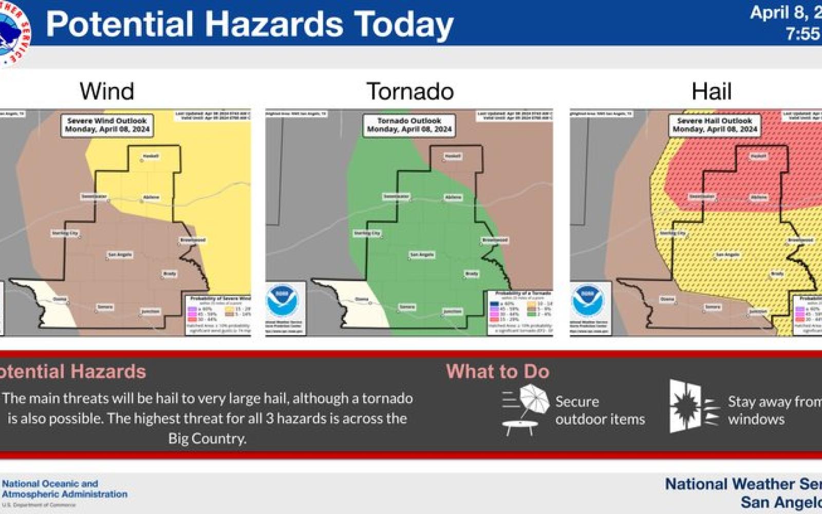 SAN ANGELO, TX — The National Weather Service has issued a warning for residents in the West Central Texas area, indicating a "slight to enhanced risk" of severe thunderstorms.
