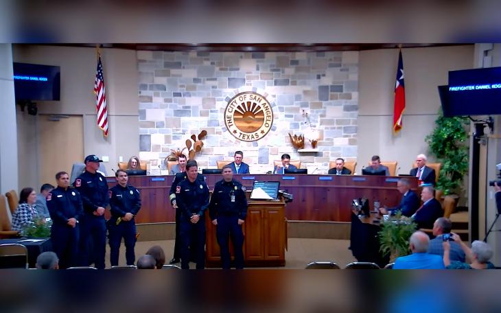 Five San Angelo firefighters were honored Tuesday after saving a 26-week premature infant born in a rare emergency, a child officials say is expected to recover.