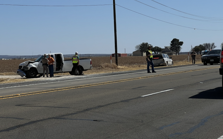 It appears a white Ford F-150 and a Chevy Suburban crashed in the highway. Communications reports indicate the highway was blocked in both directions before first responders arrived.
