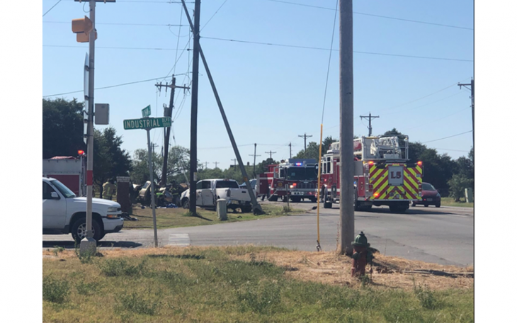 Runaway Pickup Snaps Power Pole and Rams into Old Gas Station