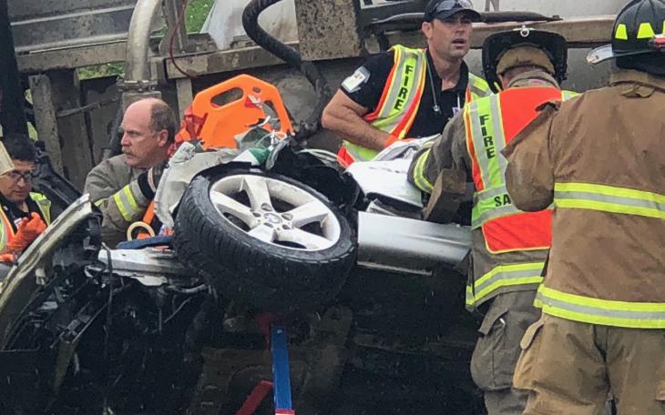 Sand Hauling Truck Crushed Car South of Wall Blocking Traffic; Multiple Injuries