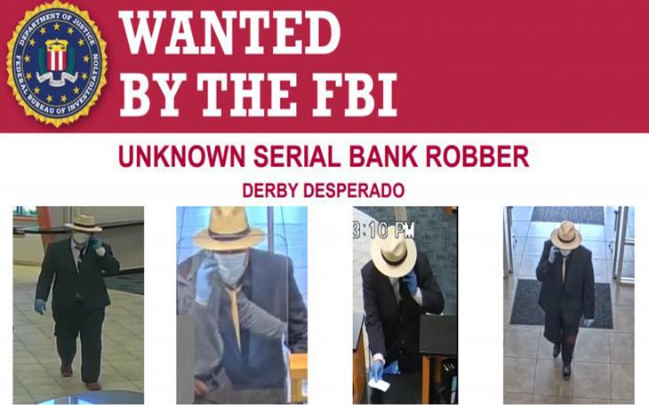 The FBI’s Dallas Division is seeking the public’s assistance to identify an unknown bank robber, nicknamed the “Derby Desperado,” responsible for two recent bank heists in Texas.
