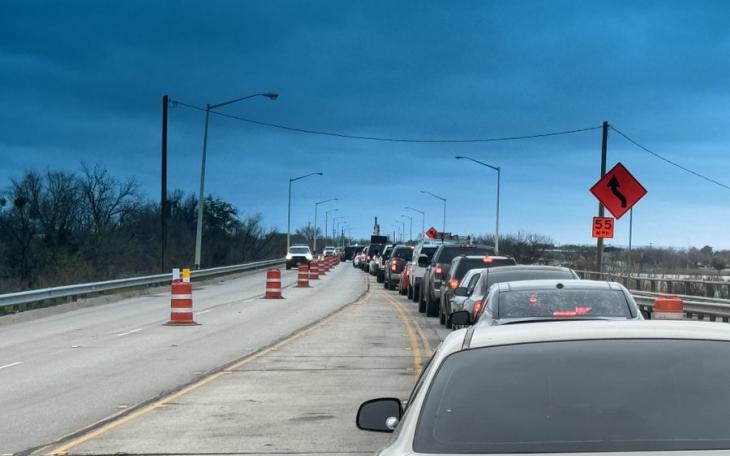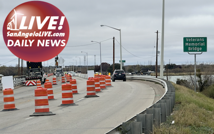 Yesterday, traffic was backed up on Knickerbocker over the Lake Nasworthy bridge several times today as contractors were setting concrete barriers using a crane.