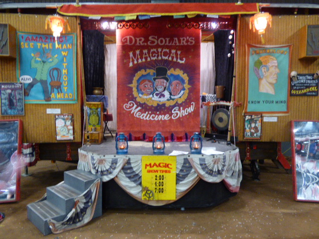 Besides anything imaginable regarding a "western" theme (rodeo events, mock gunfight, BBQ, tractor pull, Buffalo Soldier Camp, Chuck wagons and Cowboy Poet), there was also a "Medicine Man show" and Living History exhibition featuring "Pui Tomobi" (Eyes Like Sky) by Kevin Browning of "War Pony Productions." For a small fee of $5, patrons could have their photo taken with him in full costume with a variety of backgrounds that had the feel of the 1800's Native American lifestyle.