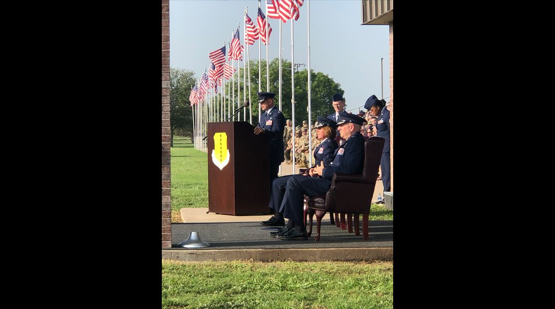 The ceremony took place before presiding officer Major General Andrea D. Tullos, the Commander of the Second Air Force at Keesler Air Force Base in Biloxi, Missouri.