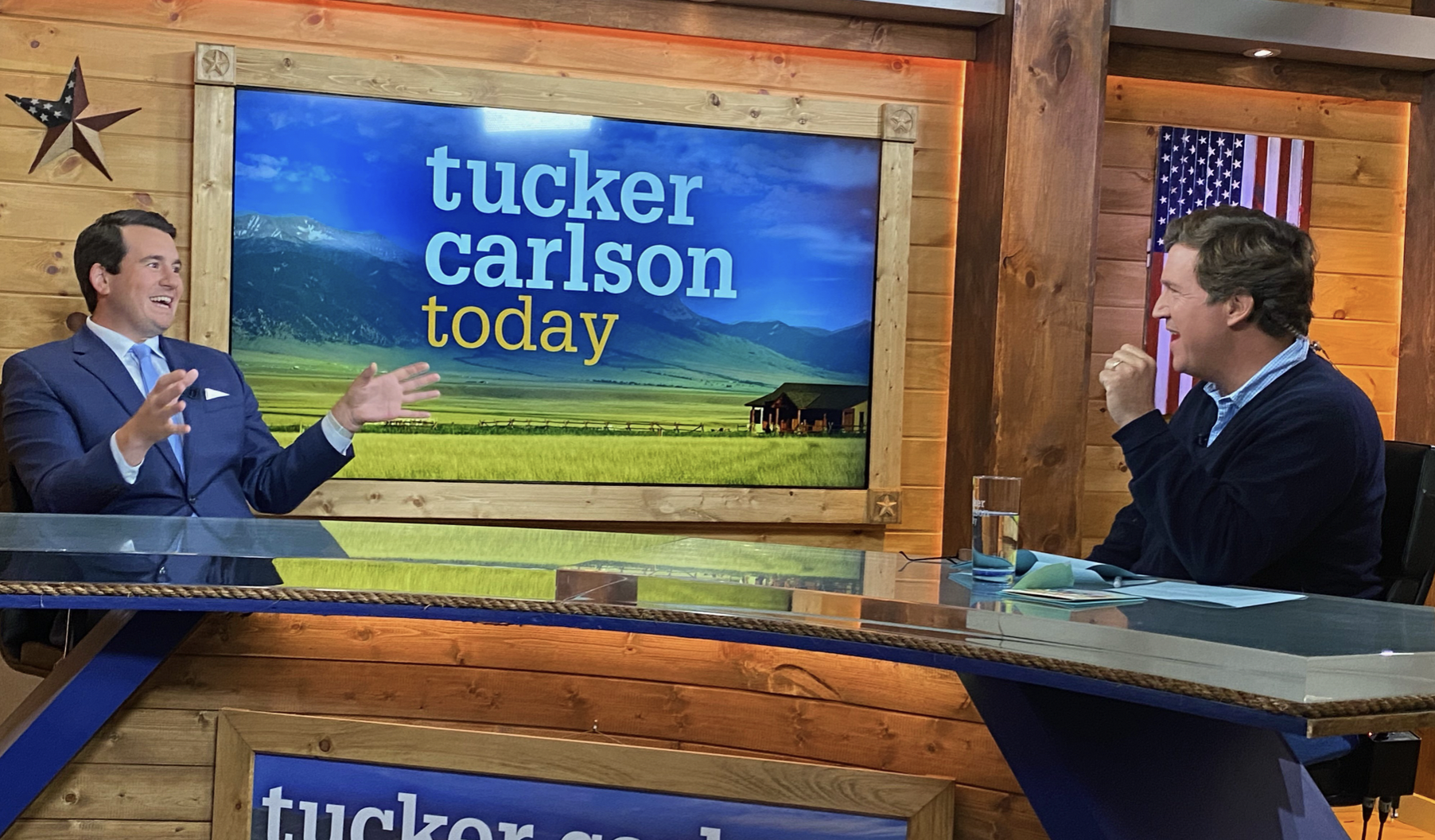 Alex Stein (left) with Tucker Carlson (right) on Tucker Carlson Today (Contributed: Alex Stien #99 Twitter)