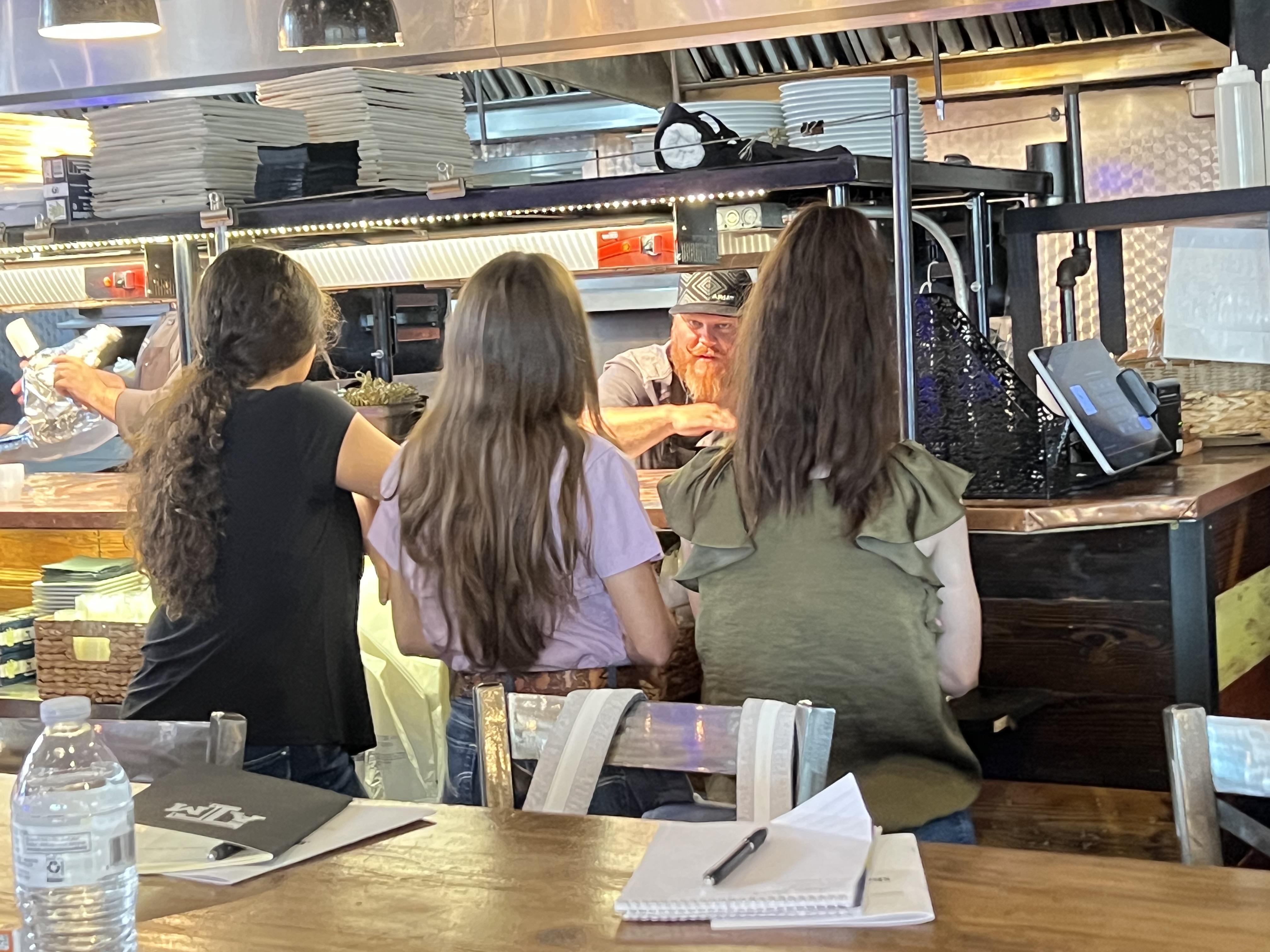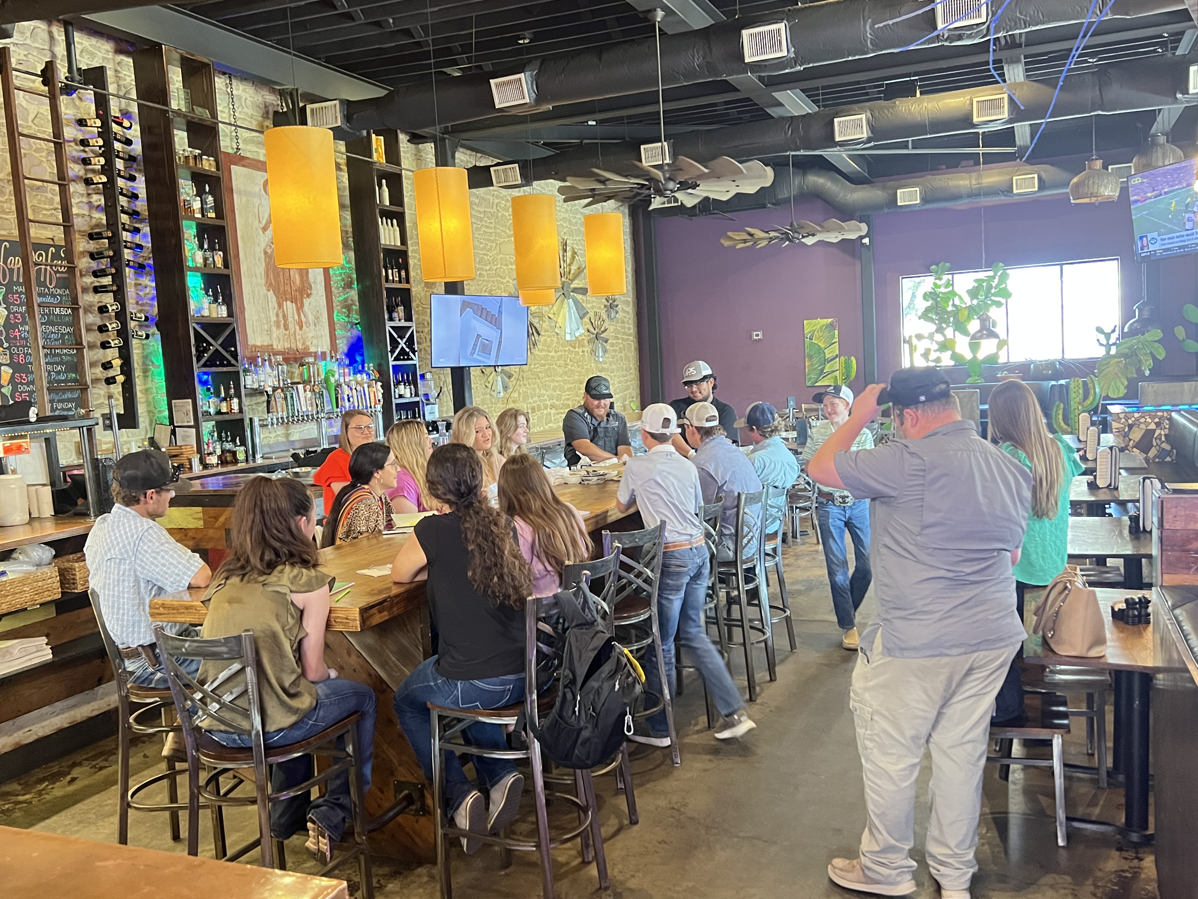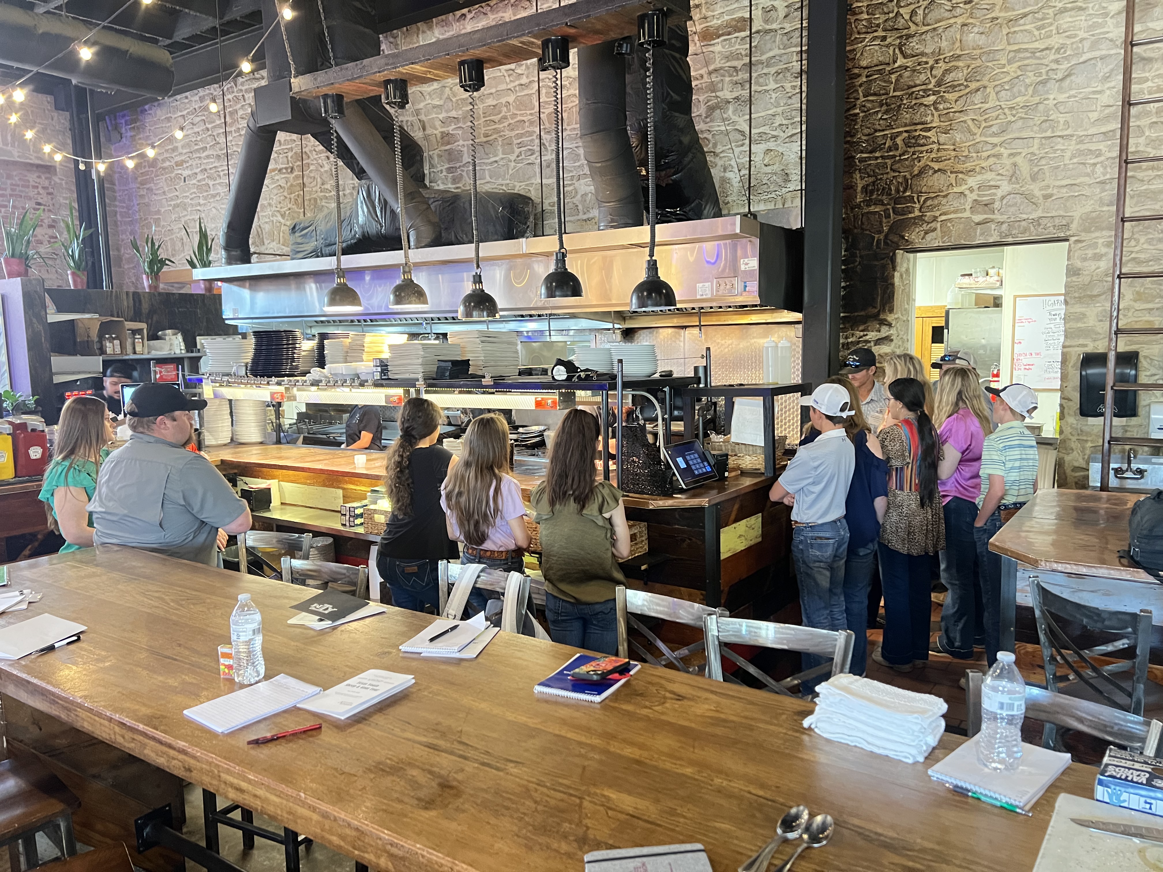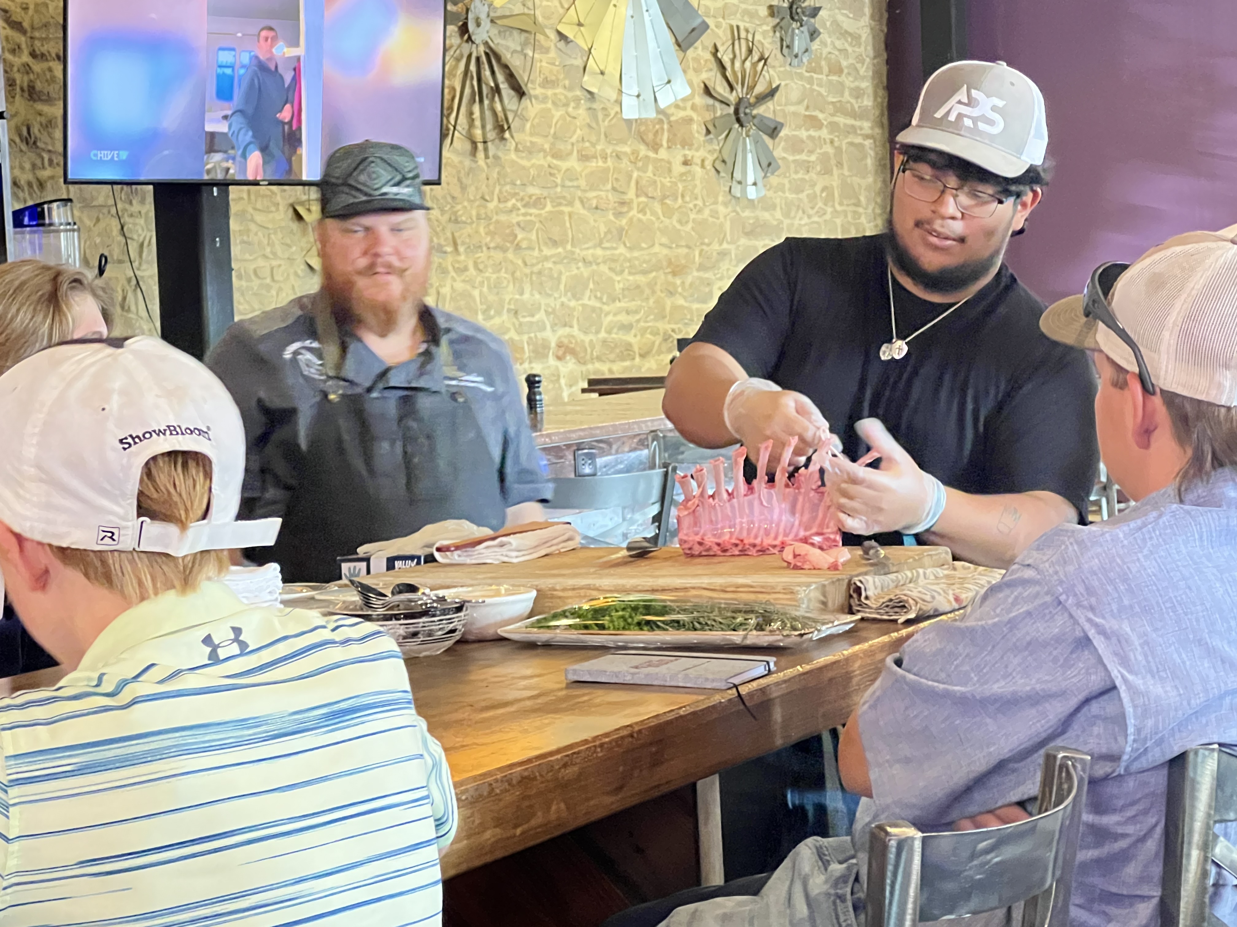 During the Texas A&M Ag Extension Agency’s Texas Youth Sheep and Goat tour, on June 26, 2023, the group of 10 to 12 students from local high schools stopped at the Angry Cactus to learn how to Roast, Grill, and Braise a rack of lamb.