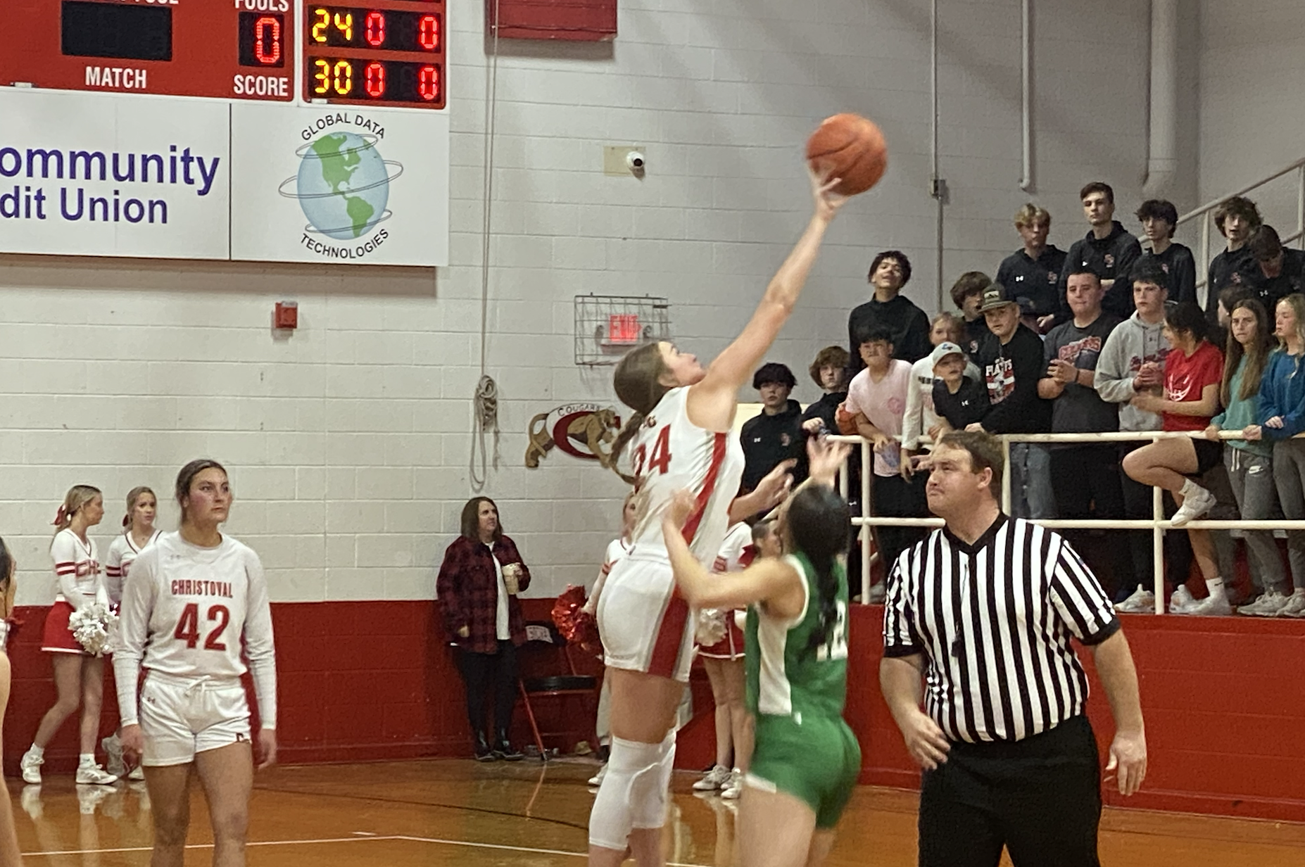 The teams went into halftime with the Lady Cougars up 23-12.