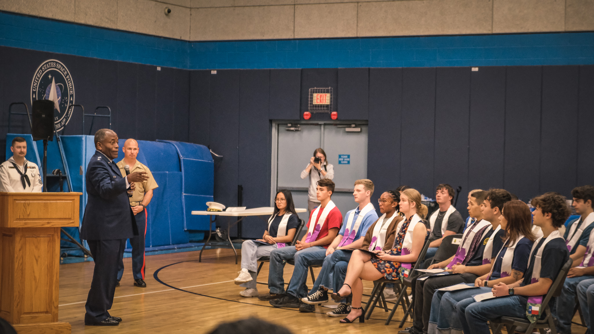 Over two dozen local high school students participated in the ceremony highlighting their commitment to attend a service academy, accept a Reserve Officers’ Training Corps scholarship, or enlist as active duty, reserve, or National Guard.
