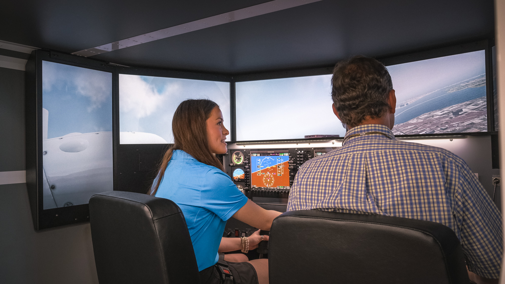 Simulator Room with six industry-standard Redbird flight simulators