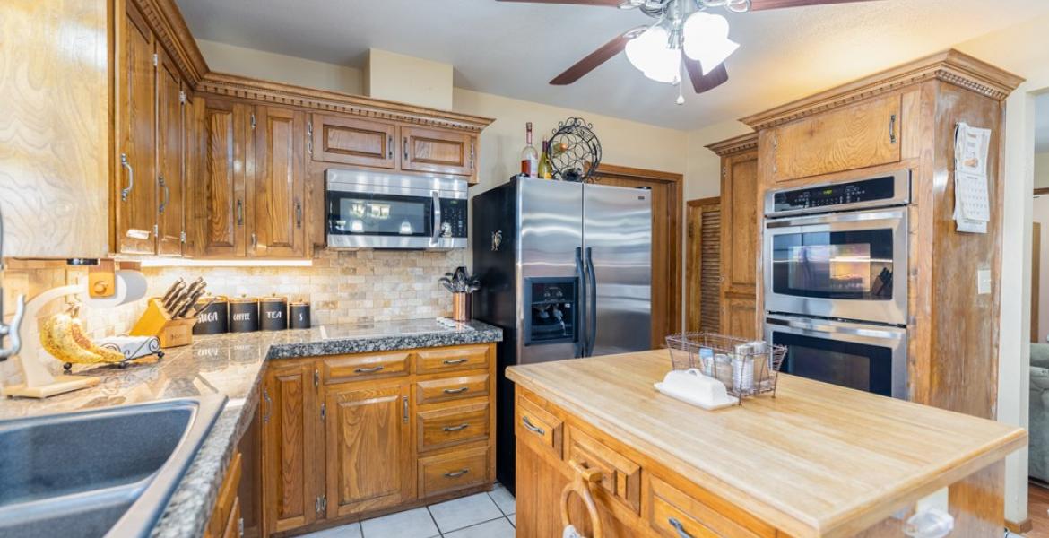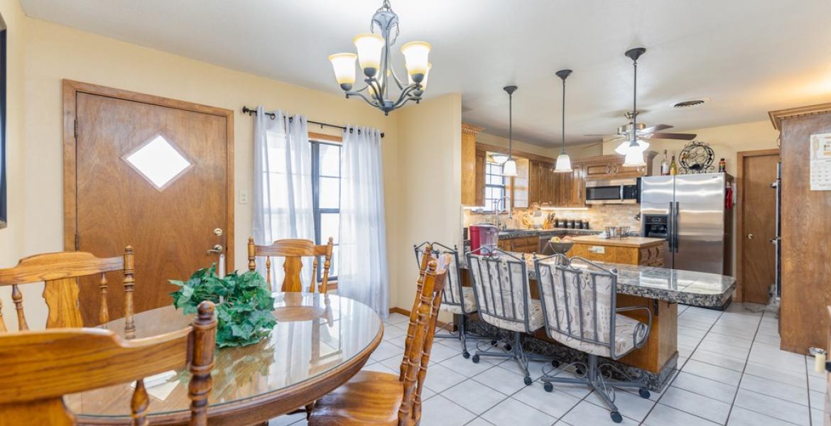 Dying to get outside city limits and have a little space of your own? Look no further! This fantastic 4 bedroom/ 3 bath home sits on 1.75 acres just 15 minutes east of San Angelo. With 3813 square feet this home offers a plethora of room for entertaining and storage galore! 2 living areas with 2 cozy wood burning fireplaces, a beautiful kitchen with working island and stainless appliances, an attached apartment/mother-in-law suite (with additional living area, kitchenette, bedroom and bathroom), and an expansive privacy fenced back yard provide space for all! This property has so many great features- Large laundry area with cedar closet, 2 water wells, landscaped yard with sprinkler system, spacious covered patio and an extra bonus office space. Metal roof was replaced in September of 2021.Get it before it's gone!!