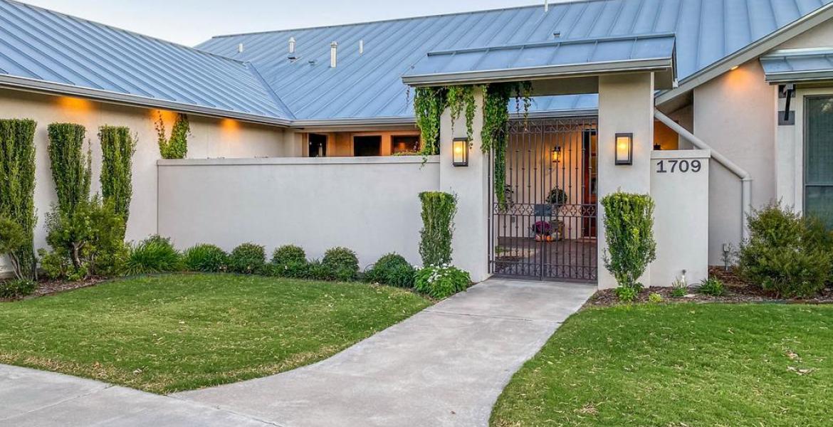 Bright, beautiful, and stunning describe this Bentwood Country Club Estates custom home with an expansive golf course and West Texas view. Custom iron gates lead you into a spacious courtyard. Built in 2012, the main living area with a built-in cocktail bar, fireplace, and 10-foot ceilings open to a show-stopping kitchen. The 11-foot peninsula bar top, granite countertops, Viking appliances, and custom cabinetry makes the kitchen a chef’s dream. There are three spacious bedrooms, two full baths, and three half baths. The primary suite has his and her baths. The remaining ceilings are all 9 feet, with every door in the house at 8 feet. 36” accessible doorways with no thresholds, step-ups, or step-downs. There is a large walk-in pantry and a separate utility room next to the office. The backyard boasts a large, covered patio, outdoor kitchen, wood-burning fireplace, and custom pool with automatic bottom cleaners and a rainwater harvesting system.