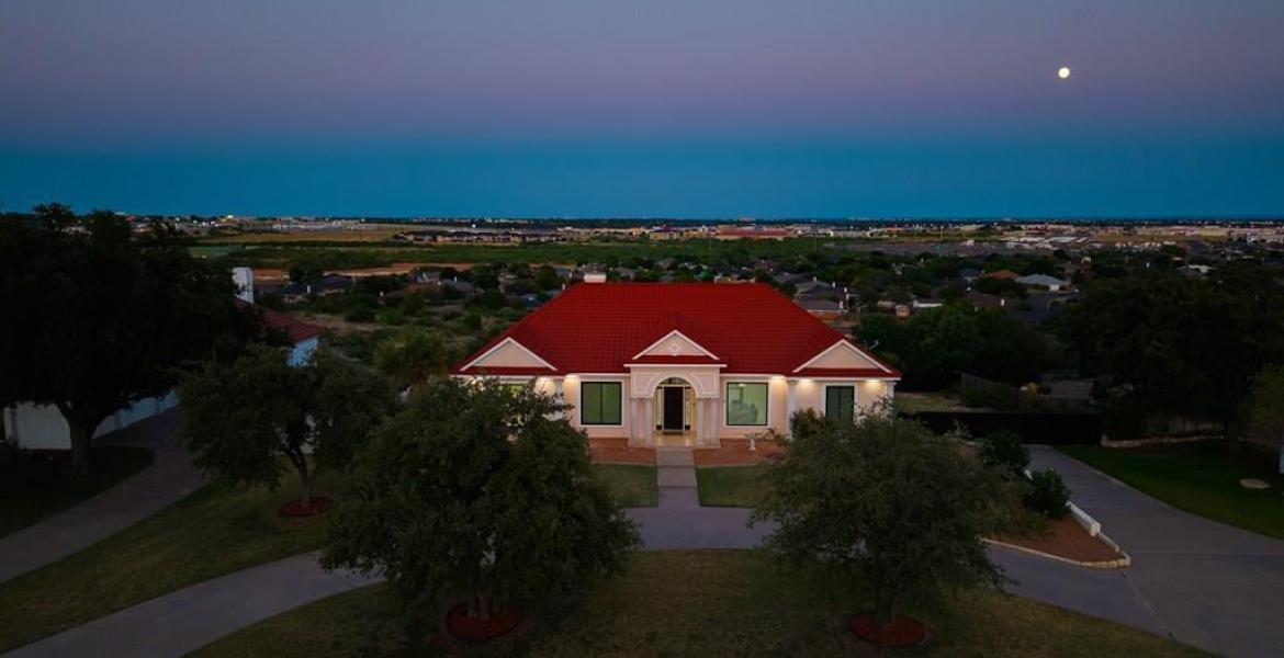 This exquisite home in the upper Bluffs has stunning views of San Angelo. The spacious kitchen offers an abundance of cabinet and counter space. Enjoy the views this winter while sitting near the beautiful faux fireplace. The primary room provides glass doors to the balcony overlooking the city. The primary bathroom has a soaking tub, double vanity and beautiful shower. The home's exquisiteness shows throughout with oversized crown molding, high ceilings, gorgeous porcelain tile floors, granite countertops, beautiful lighting and fixtures and large windows that allow natural light to flow in. The downstairs has two bedrooms with large picture windows, a bathroom, laundry room and a huge bonus room that has glass doors walking out to the back porch. The home has a secret panic room. The spacious yard has a garden area and room for your favorite outdoor games. There is a three car garage and u-shaped driveway. The refrigerator, washer & dryer conveys.