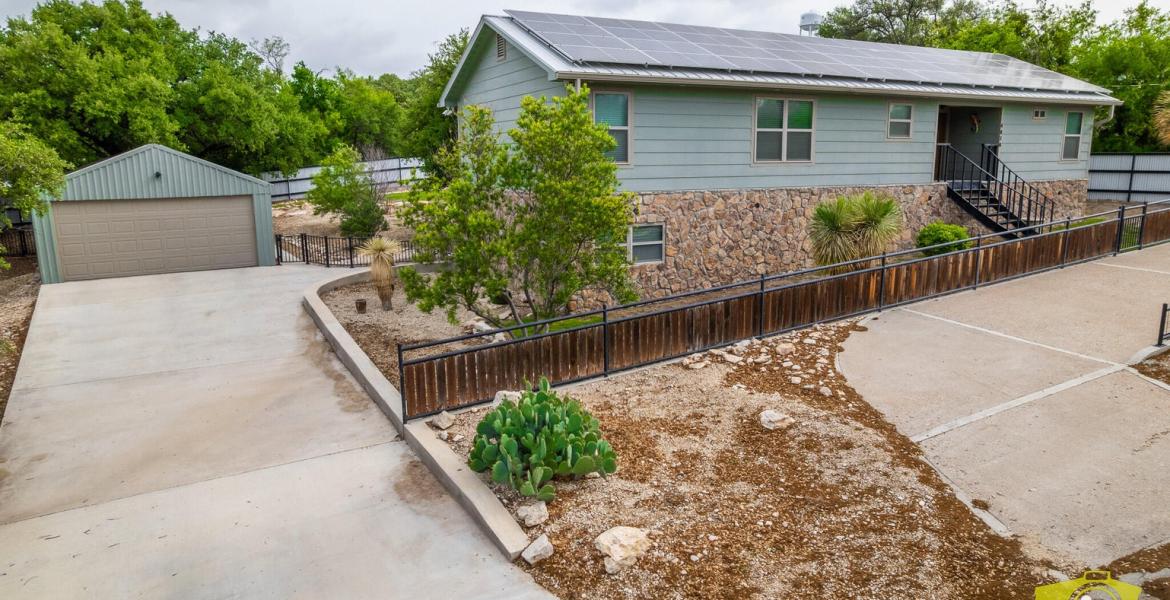 Tucked in the heart of Christoval, this truly one-of-a-kind property offers the perfect blend of charm, efficiency, and functionality all within walking distance to downtown. Featuring 3 spacious bedrooms and 2 bathrooms, the home boasts custom cabinetry, generous closet space, and an open-concept layout ideal for entertaining. Step outside and enjoy the large backyard deck with pergola, perfect for relaxing or hosting guests. Energy efficiency shines with owned solar panels, resulting in an average electric bill of just $61/month over the past year. Additional features include: 6 security cameras for added peace of mind, 60Hz air-cooled whole-house generator powered by an owned propane tank, owned reverse osmosis system, secure parking with an electric gate, aerobic septic system (only 6 years old), insulated workshop and garage with spray foam, HVAC outdoor unit replaced in 2025. Walk-in crawlspace for easy access to HVAC, plumbing, and water heater. This home is a rare find offering comfort, efficiency, and thoughtful upgrades throughout.