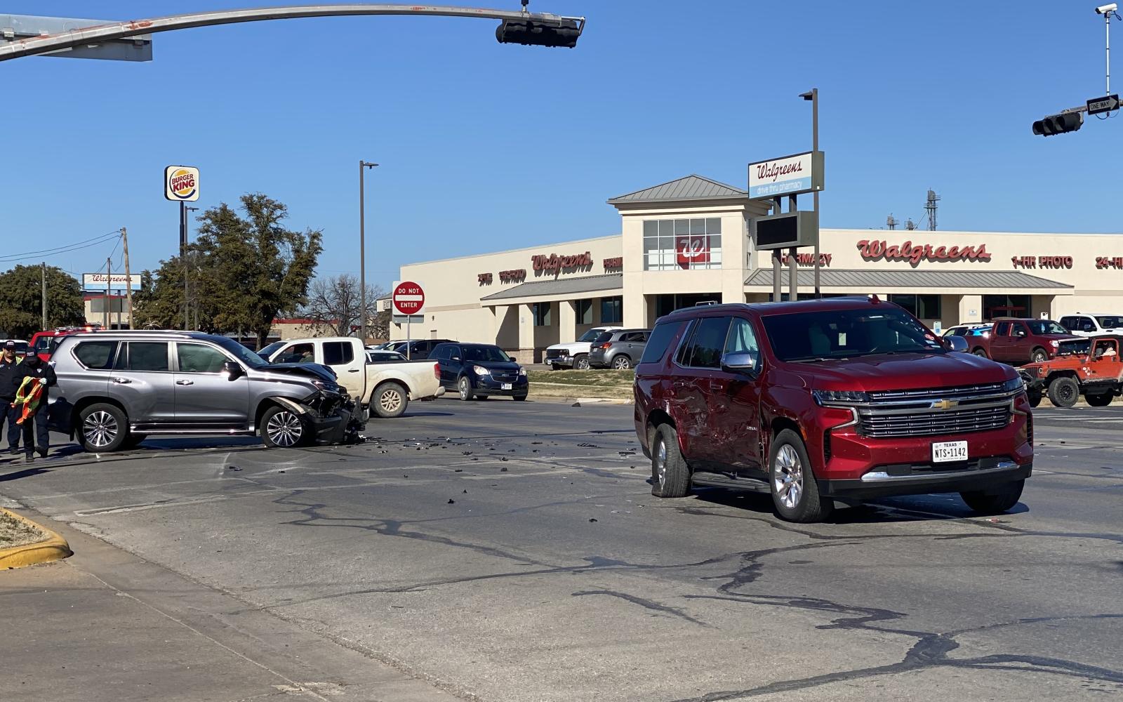 SAN ANGELO, TX - The San Angelo Police Department responded to a crash at the intersection of Harris and Abe Street Wednesday afternoon involving a grey Lexus SUV and a red Chevy Tahoe.