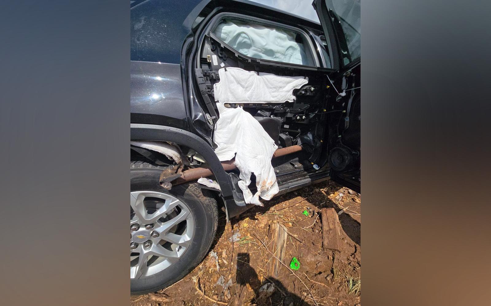 Upon arrival, they found a vehicle that had left the roadway and crashed into a pipe fence, which penetrated the vehicle. It was reported that the pipe missed all occupants by inches.