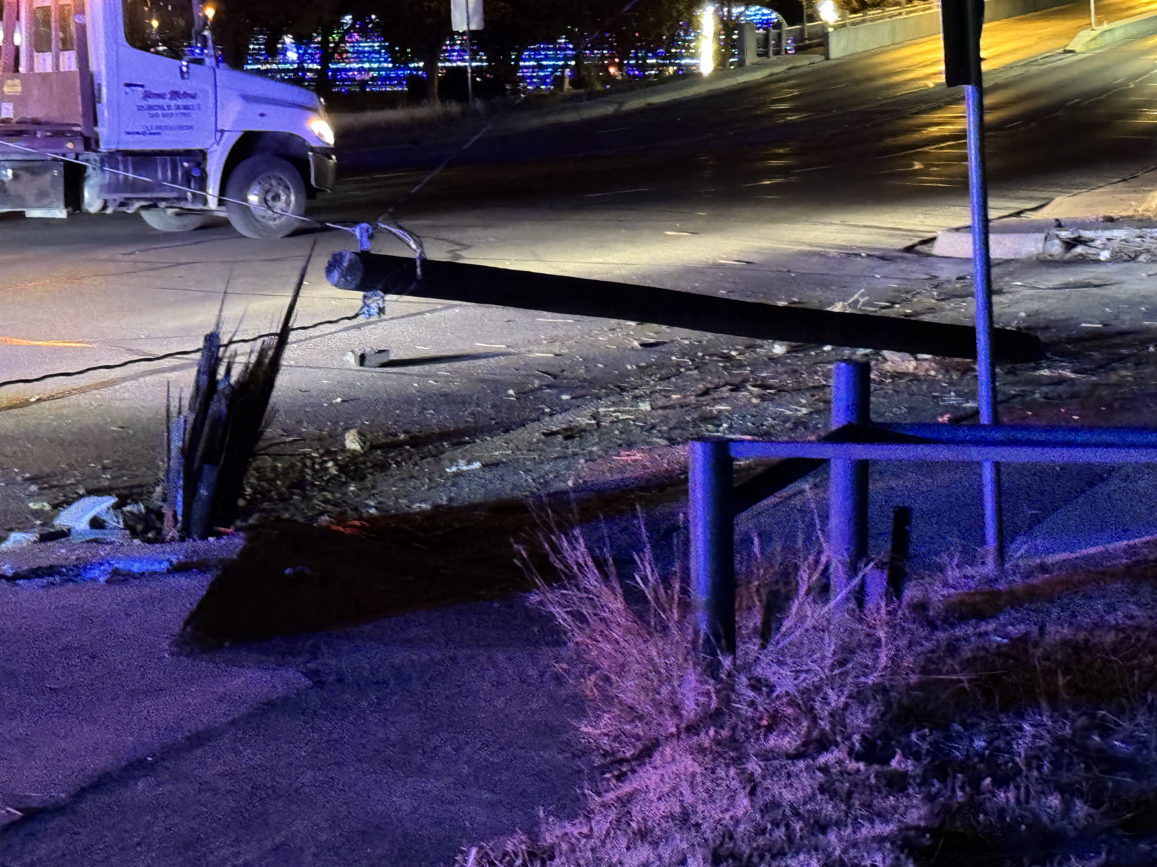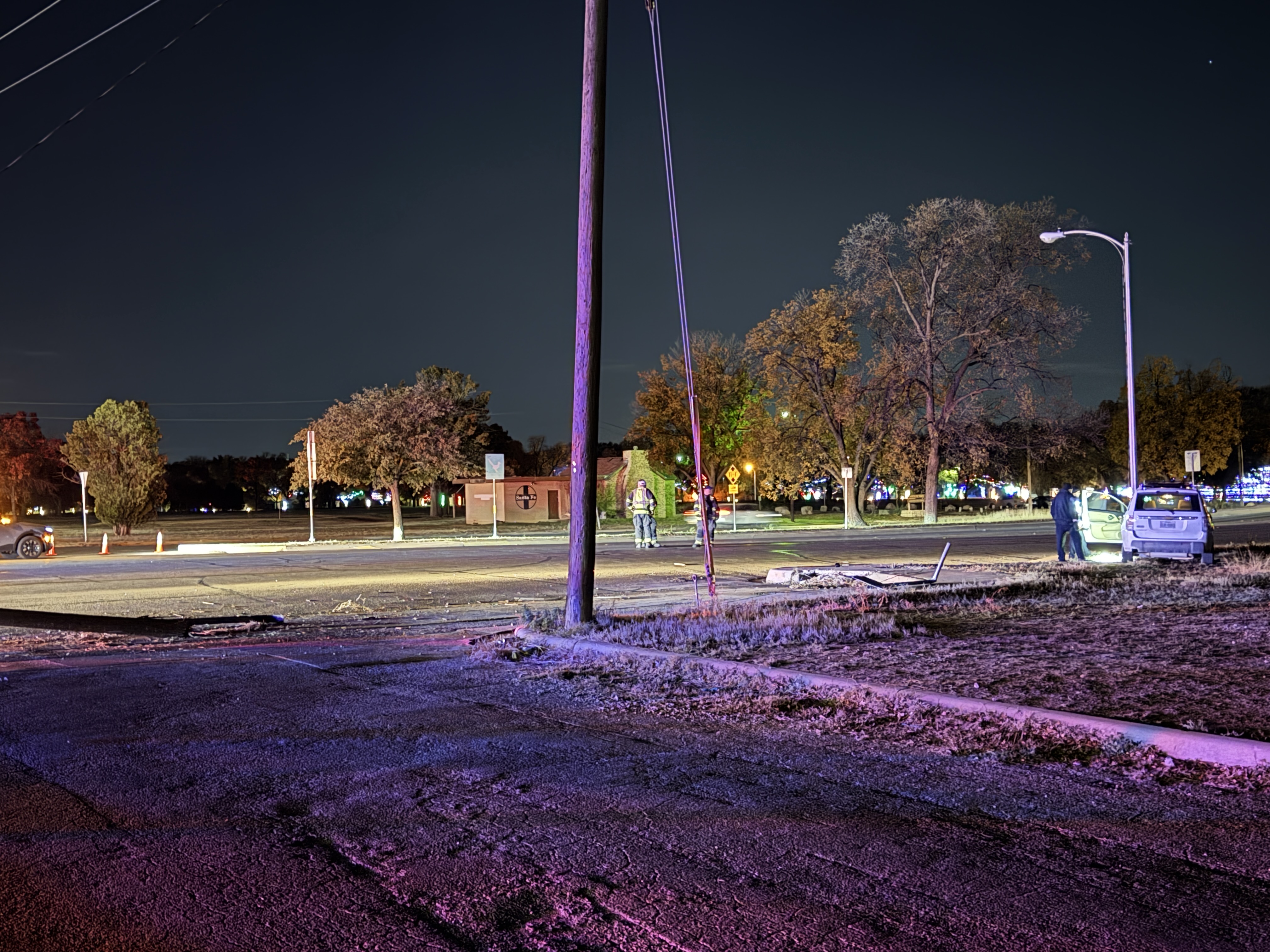 SAN ANGELO, TX — A single-vehicle crash involving a Chevy SUV knocked down a power pole Monday night near the Sonic Drive-In on Beauregard Avenue, pulling live power lines across the roadway and forcing a street closure.
