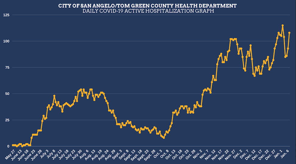 SAN ANGELO, TX – Covid-19 Hospitalizations in Tom Green County continue to rise according to Friday's numbers.
