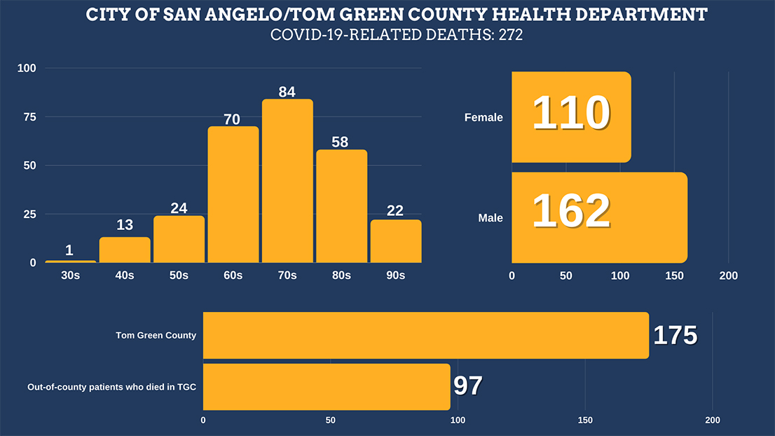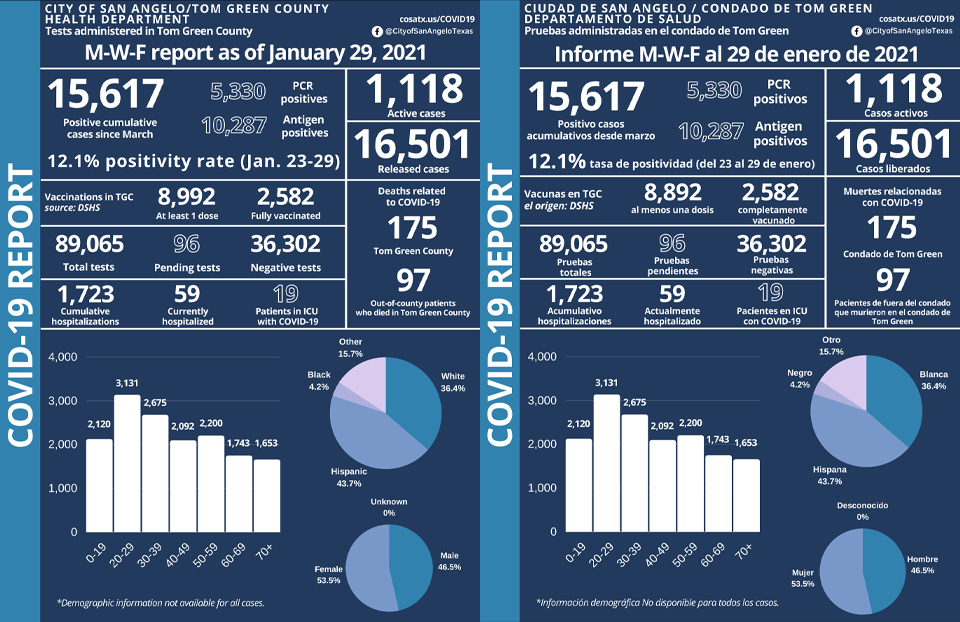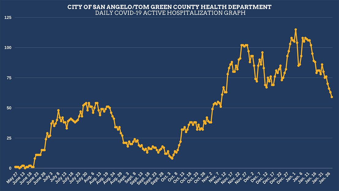 There are currently 1,118 active cases in Tom Green County and there are currently 59 patients hospitalized. At least 19 of the patients are in the intensive care unit.