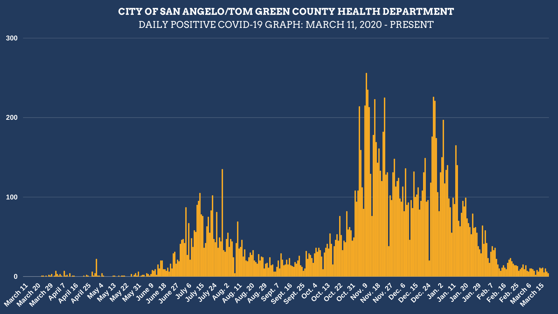 SAN ANGELO, TX -- Tom Green County is closing out the week with only four new positive COVID-19 infections.