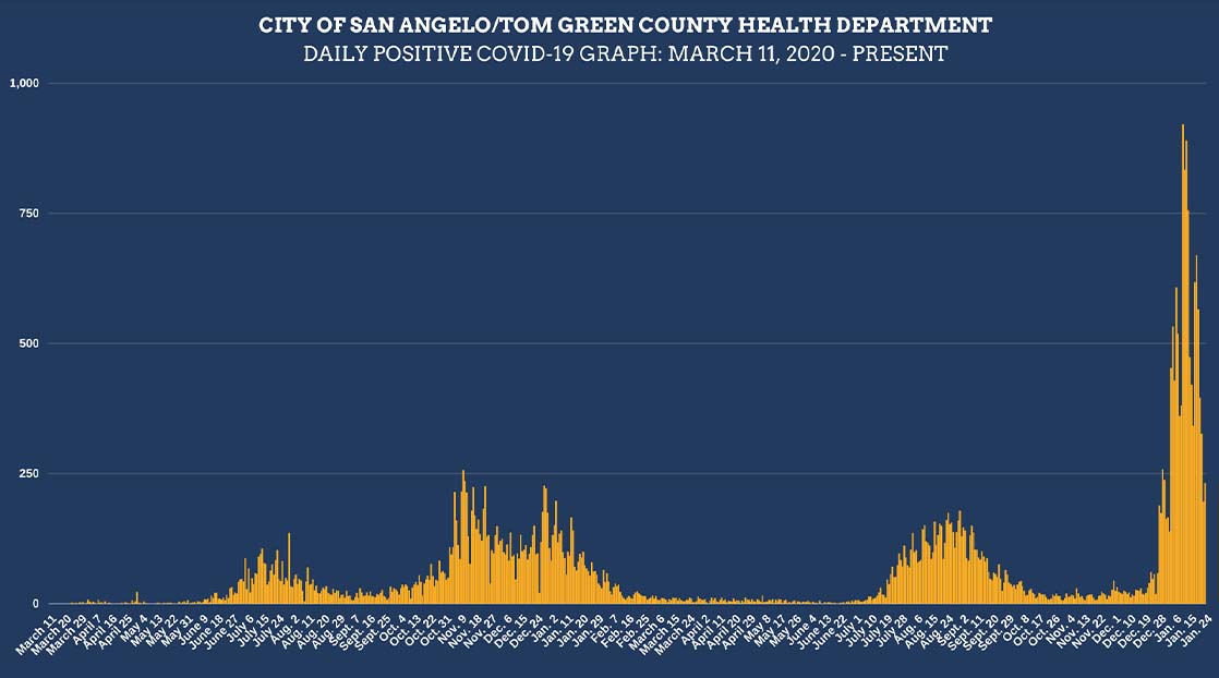 SAN ANGELO, TX –– The San Angelo Health Department has confirmed 752 new coronavirus infections in the last three days.