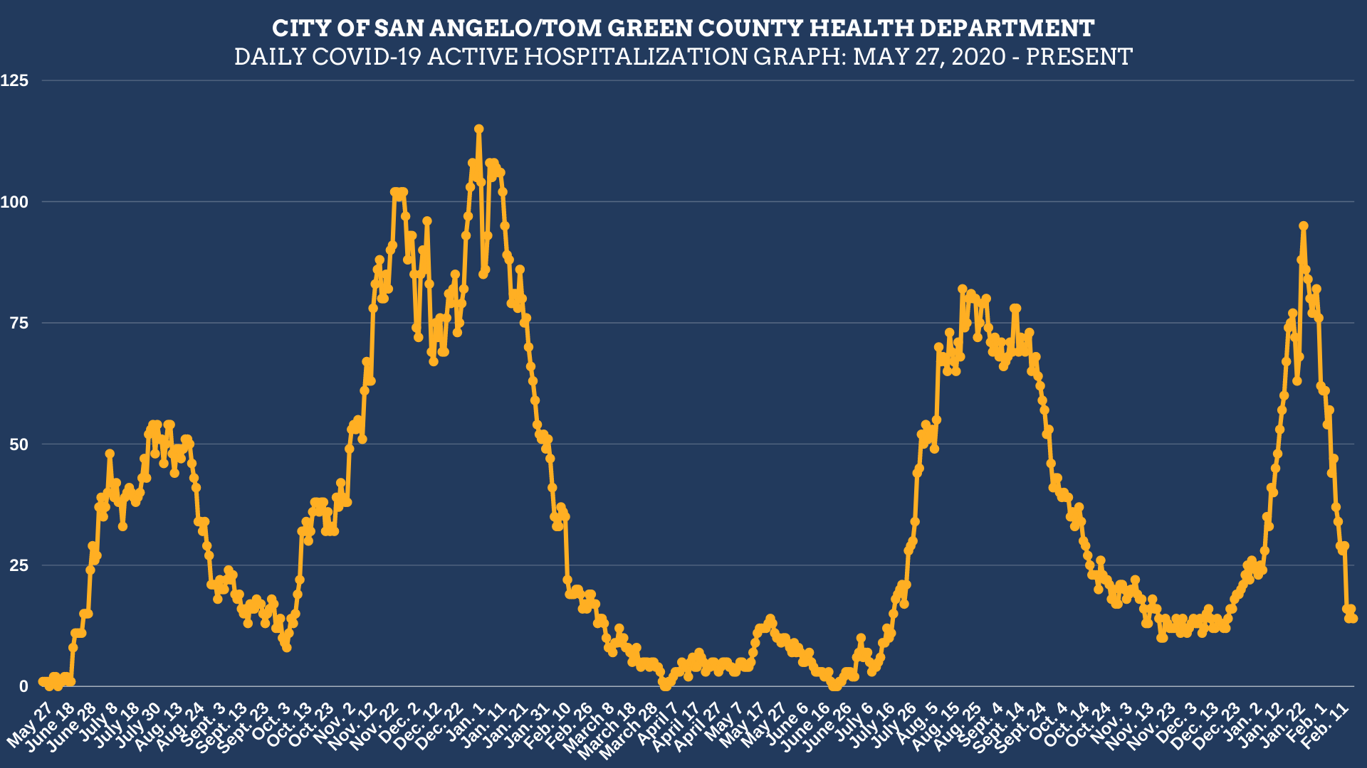 Currently there are 15 patients hospitalized with COVID-19 in Tom Green County.