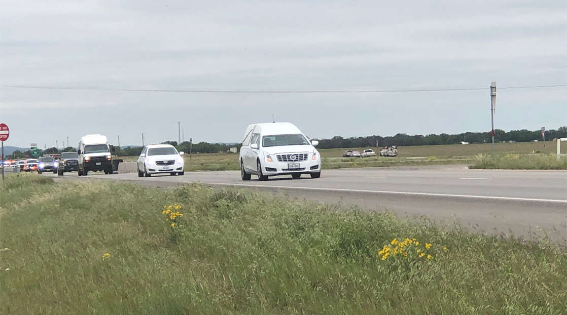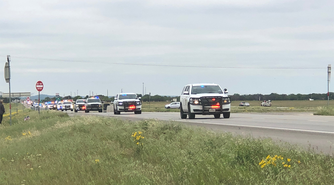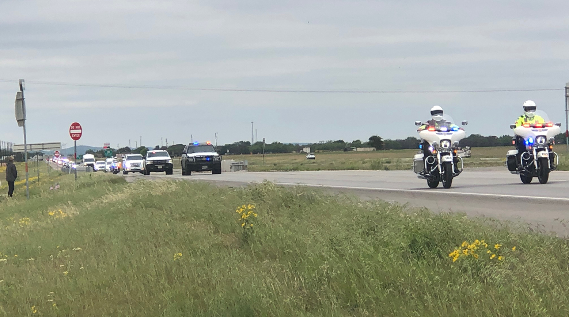 The remains of Sgt. Jones were transported from Lubbock where his autopsy was performed. Along the way, first responders lined the roadway to salute the fallen deputy as the procession passed their communities.