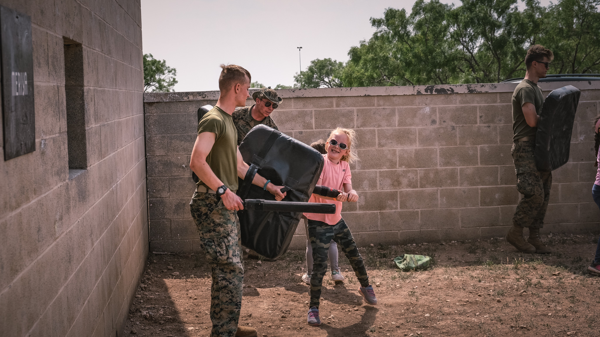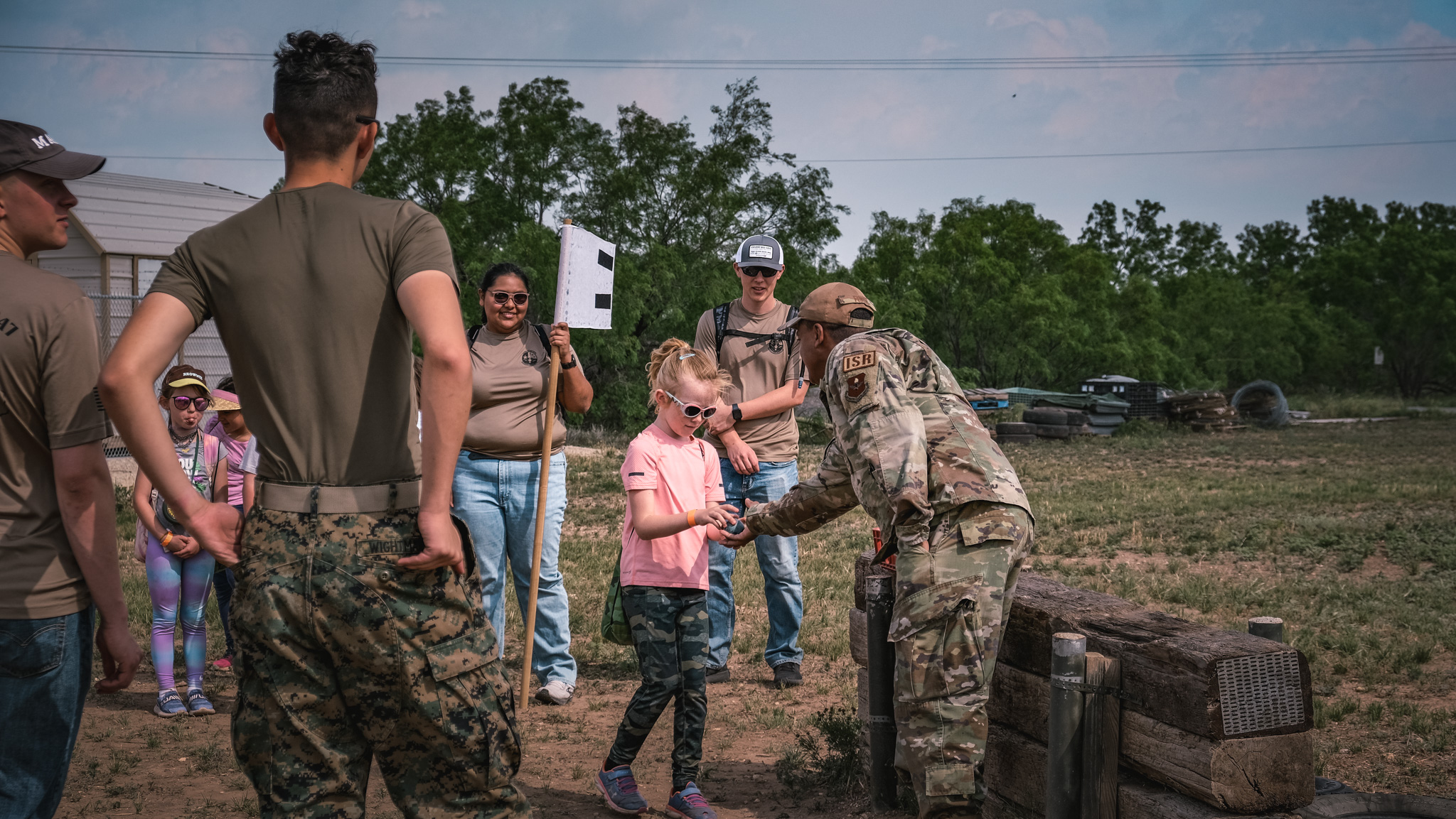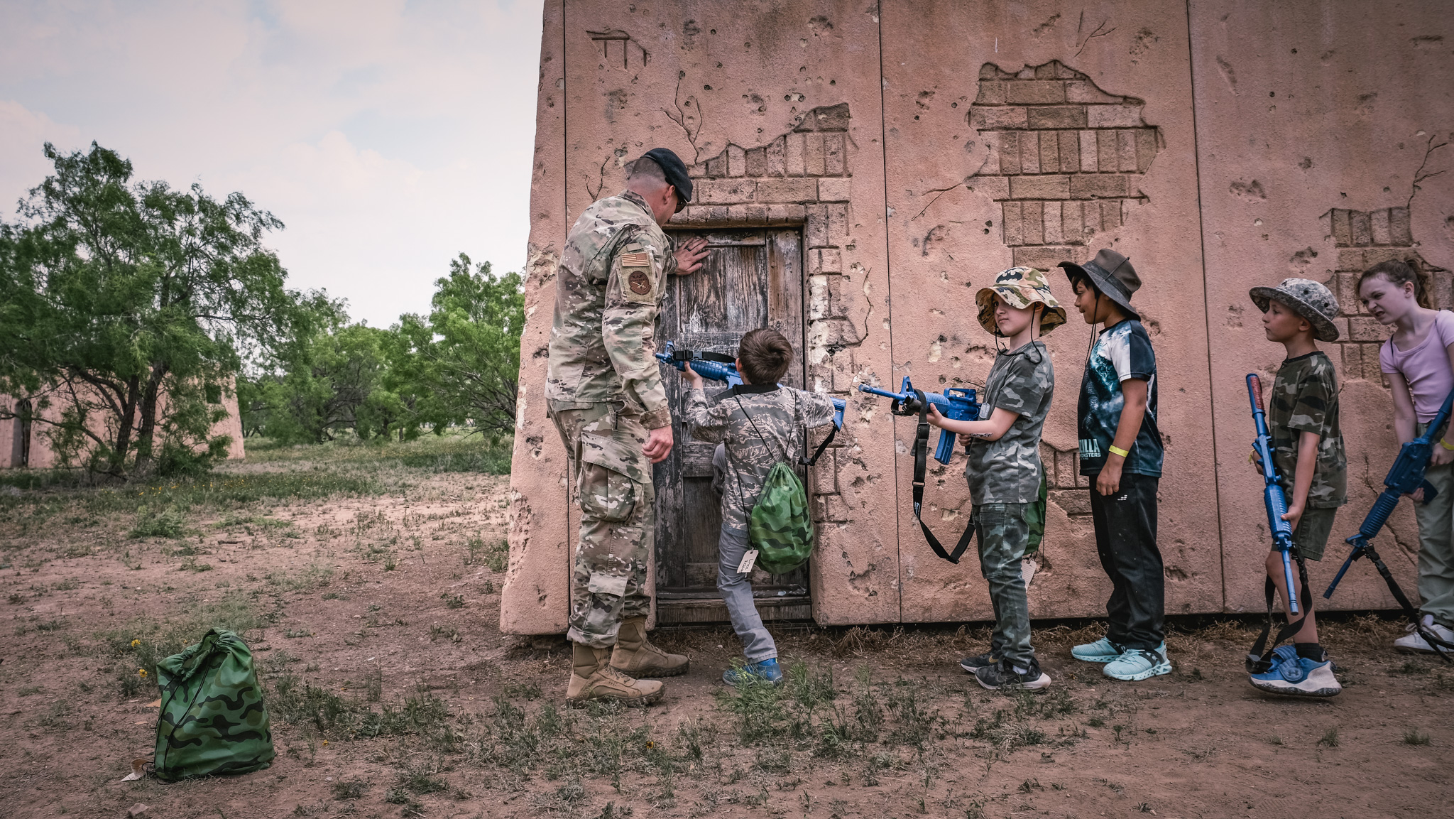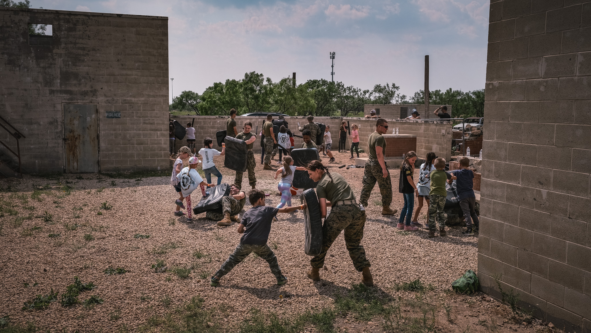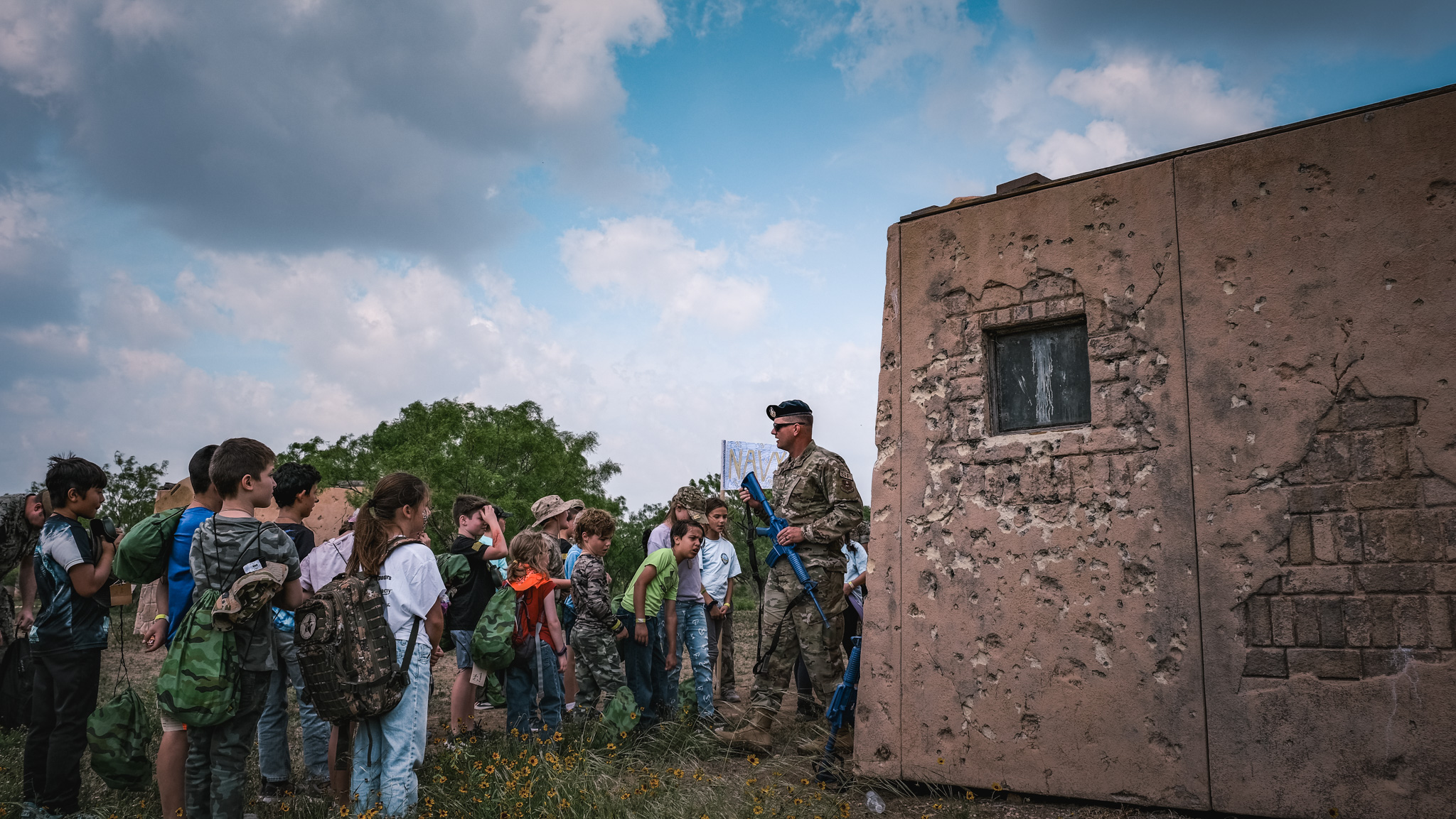 The groups then rotated through stations all over Goodfellow, including building clearing simulations, first aid, a fire academy, a K-9 demonstration, close-quarters combat drills, and a Nerf gun war. They even got to throw fake grenades and ride in a military hummer.