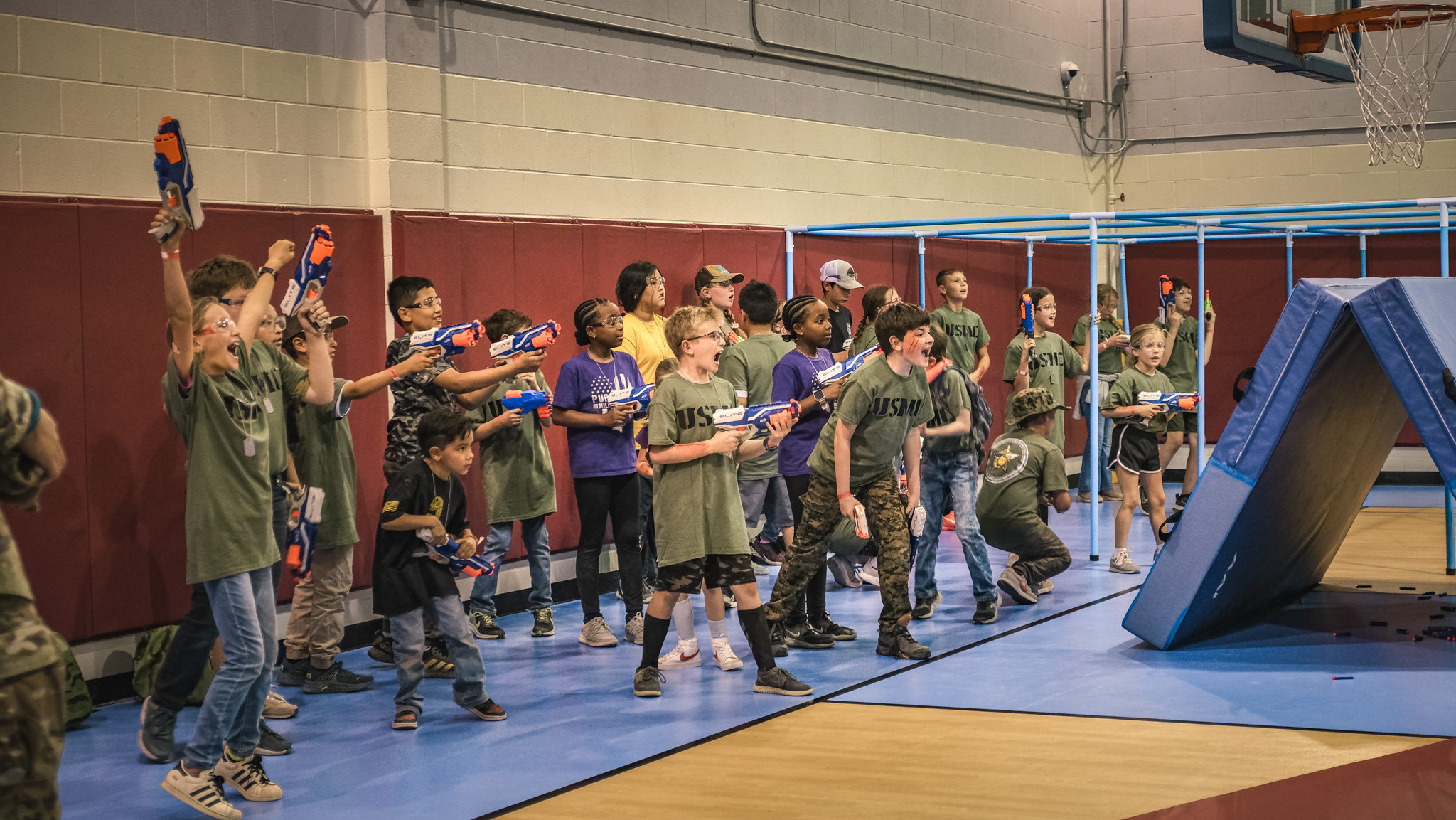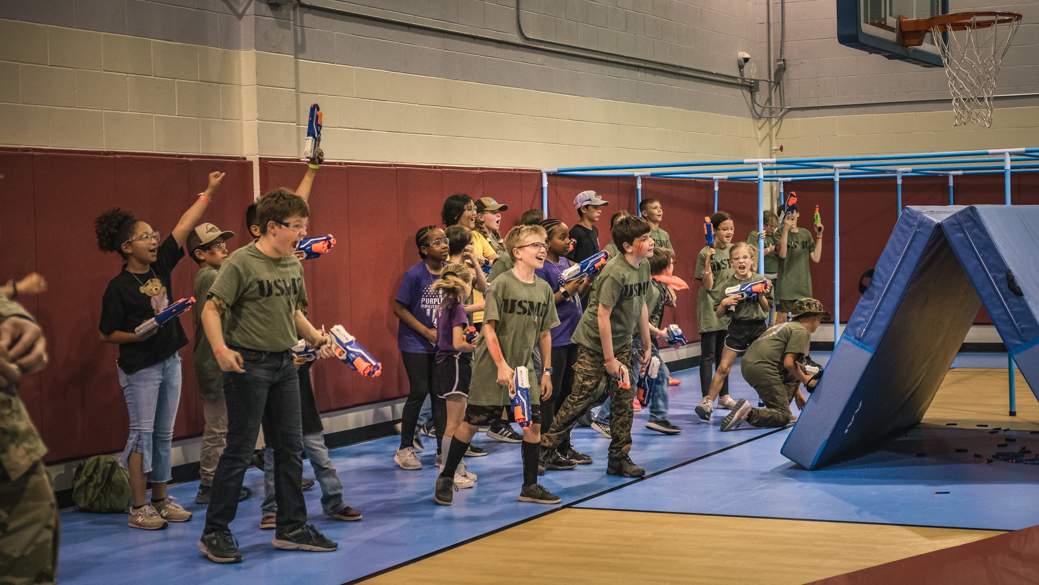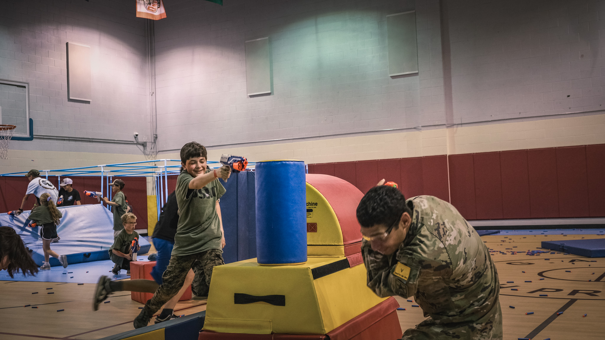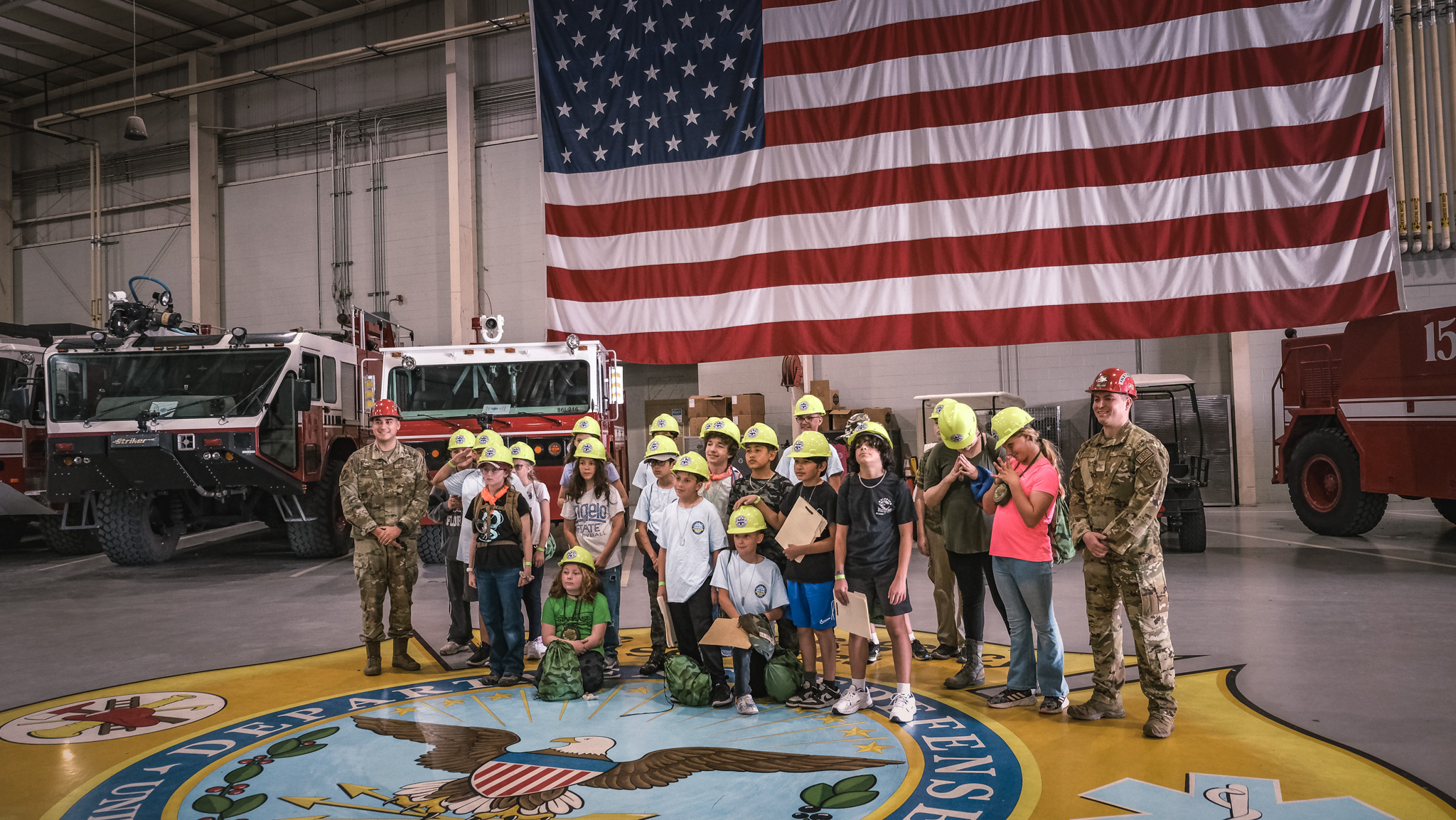 The groups then rotated through stations all over Goodfellow, including building clearing simulations, first aid, a fire academy, a K-9 demonstration, close-quarters combat drills, and a Nerf gun war. They even got to throw fake grenades and ride in a military hummer.
