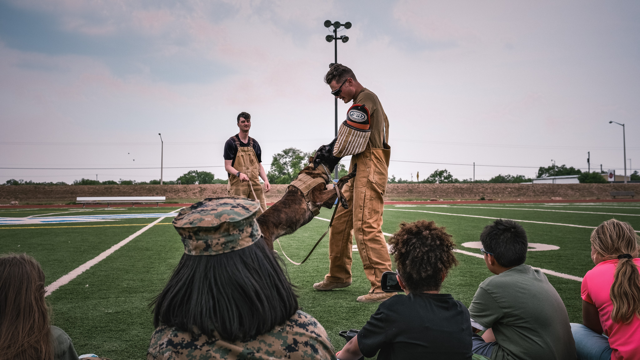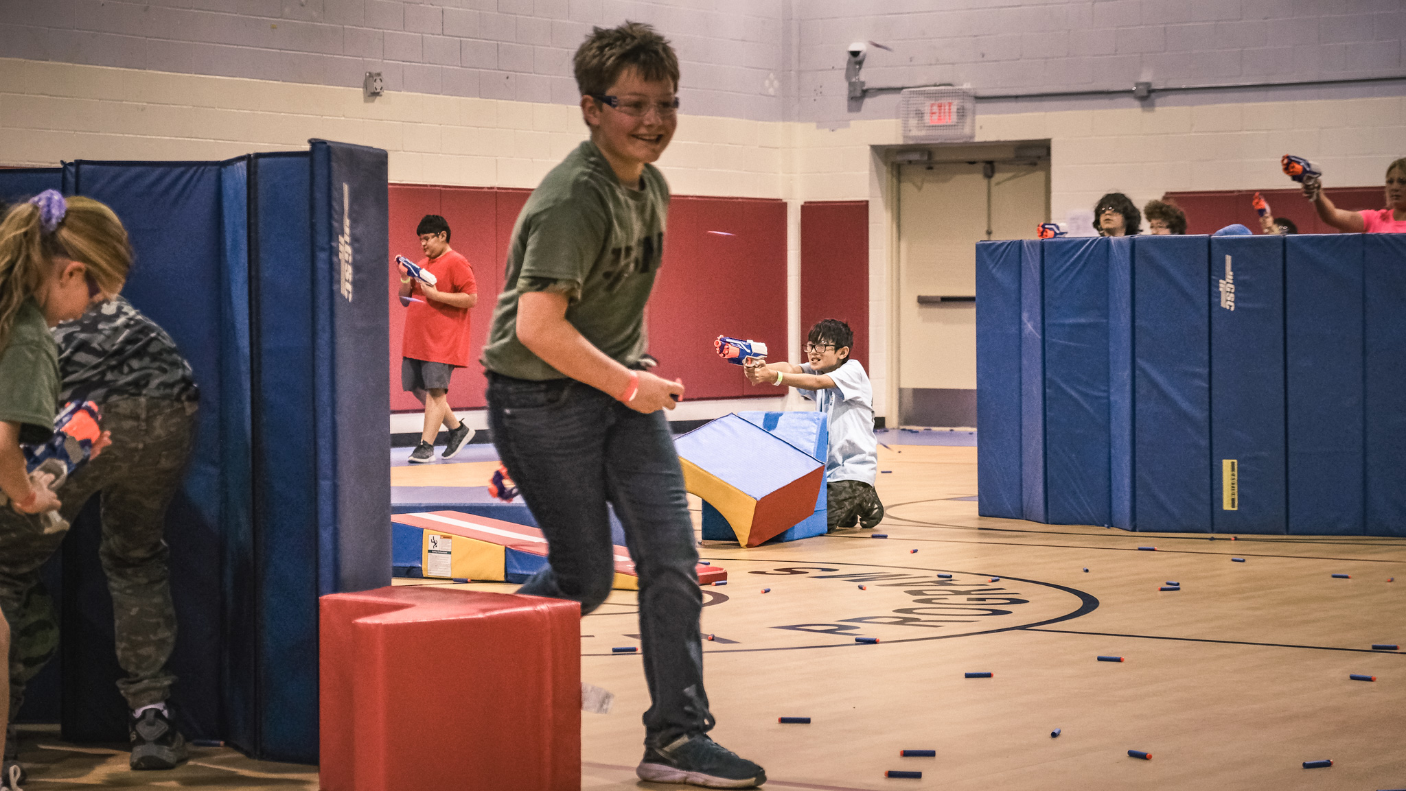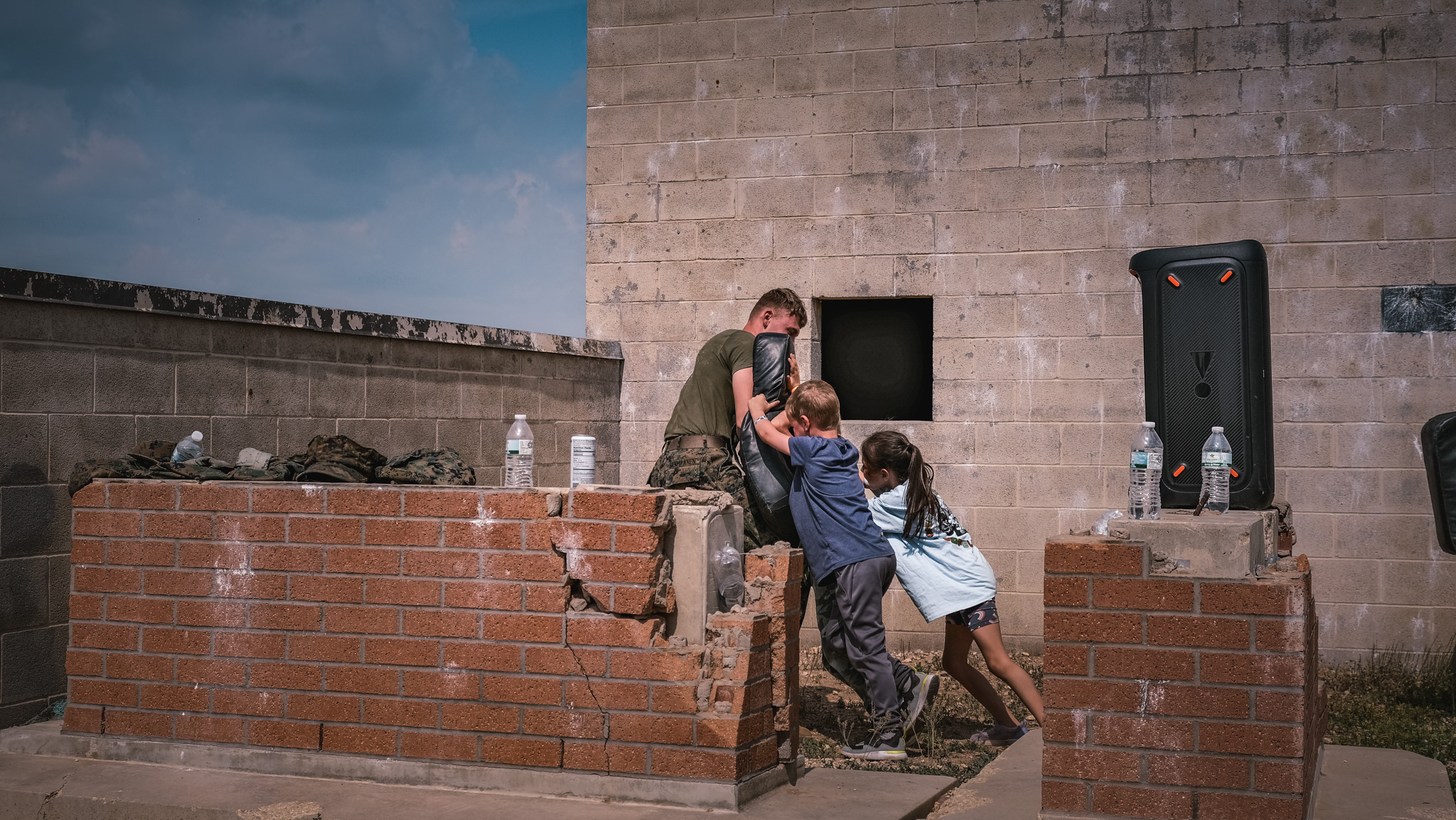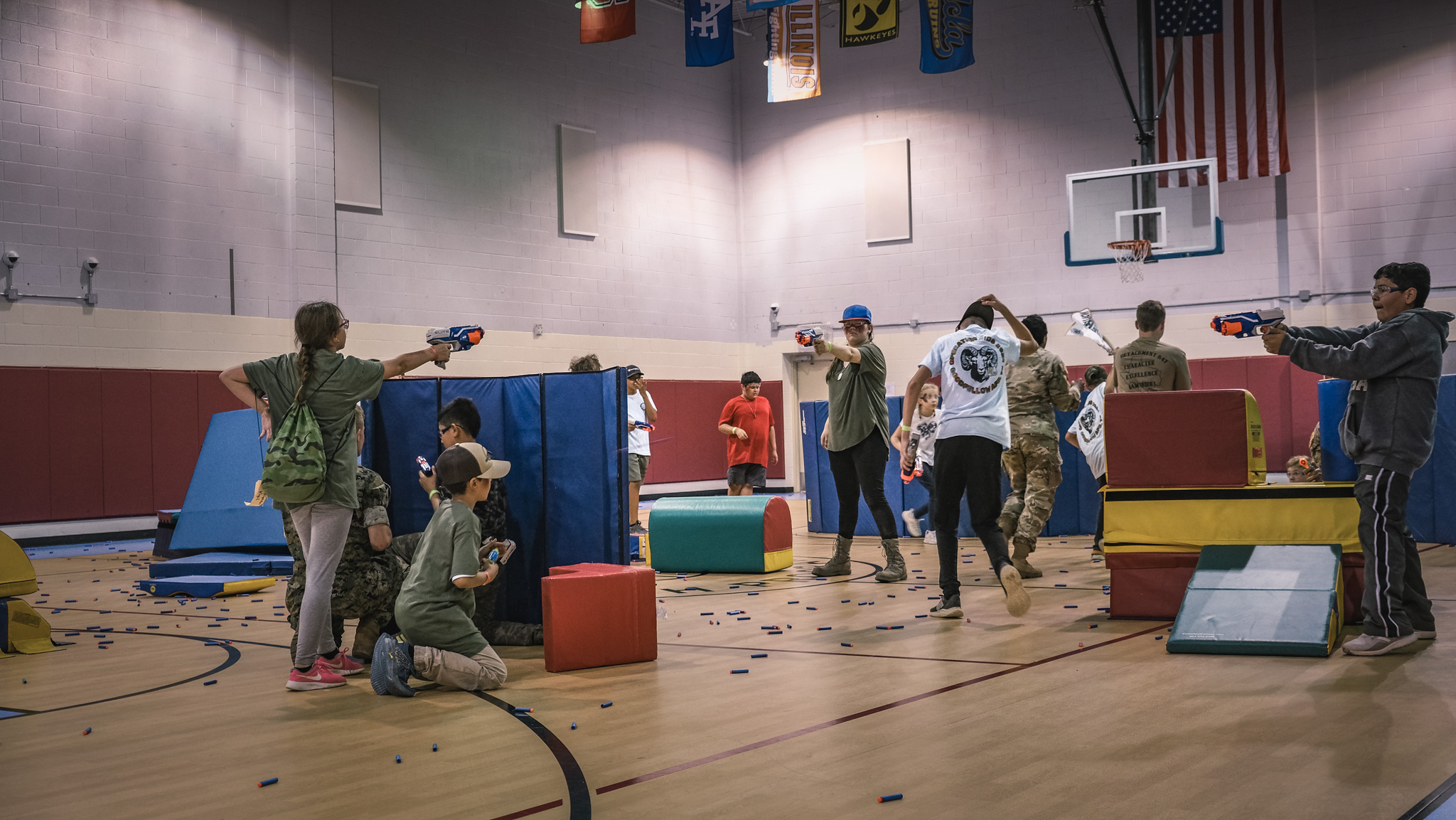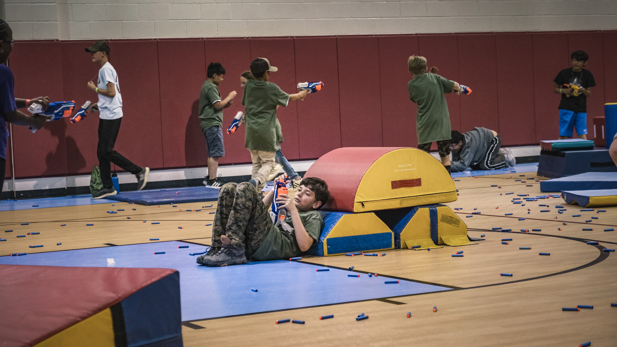 The groups then rotated through stations all over Goodfellow, including building clearing simulations, first aid, a fire academy, a K-9 demonstration, close-quarters combat drills, and a Nerf gun war. They even got to throw fake grenades and ride in a military hummer.