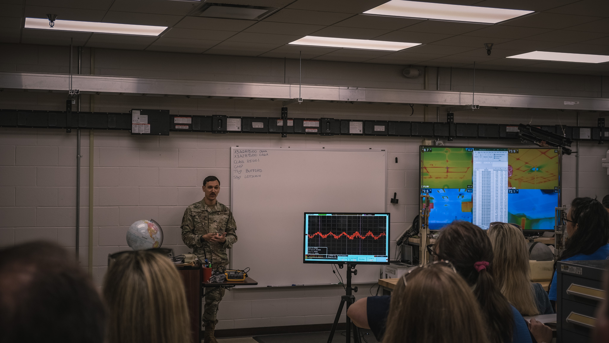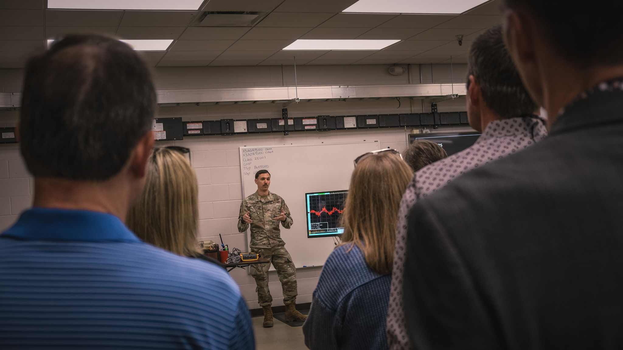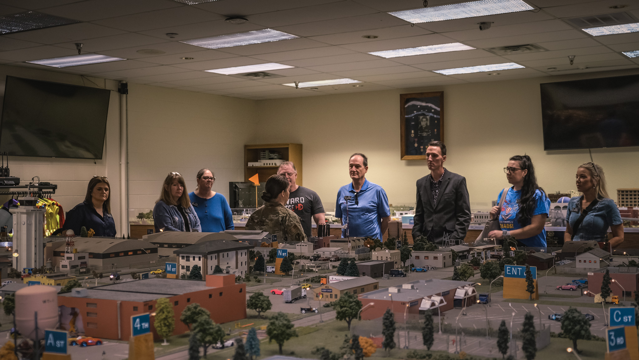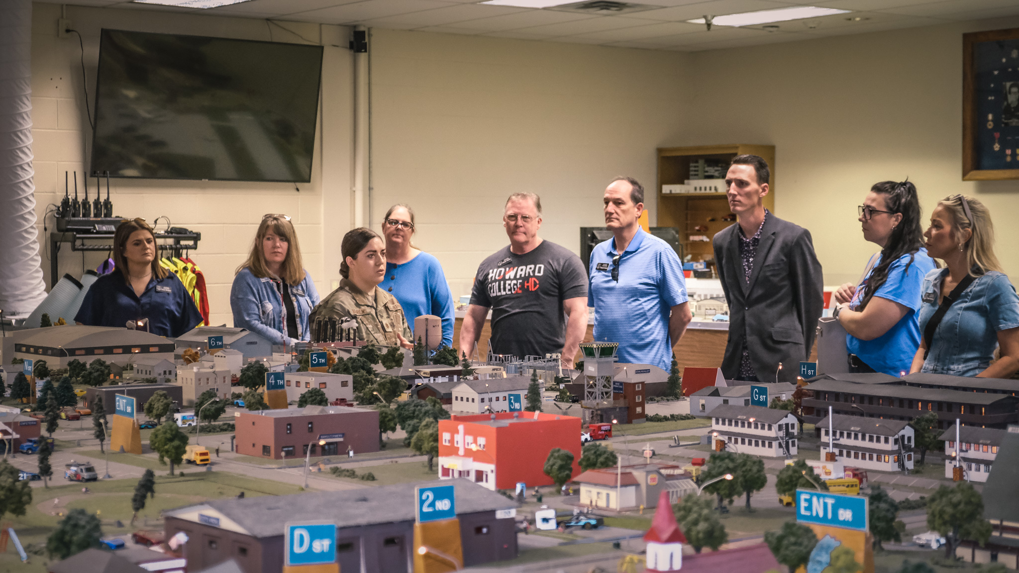 The honorary commanders toured multiple training sites, including the Norma Brown Building, a simulation facility used to train future fire officers, and a seismic activity station where participants learned how military personnel monitor earthquakes, bomb detonations, and nuclear explosions.