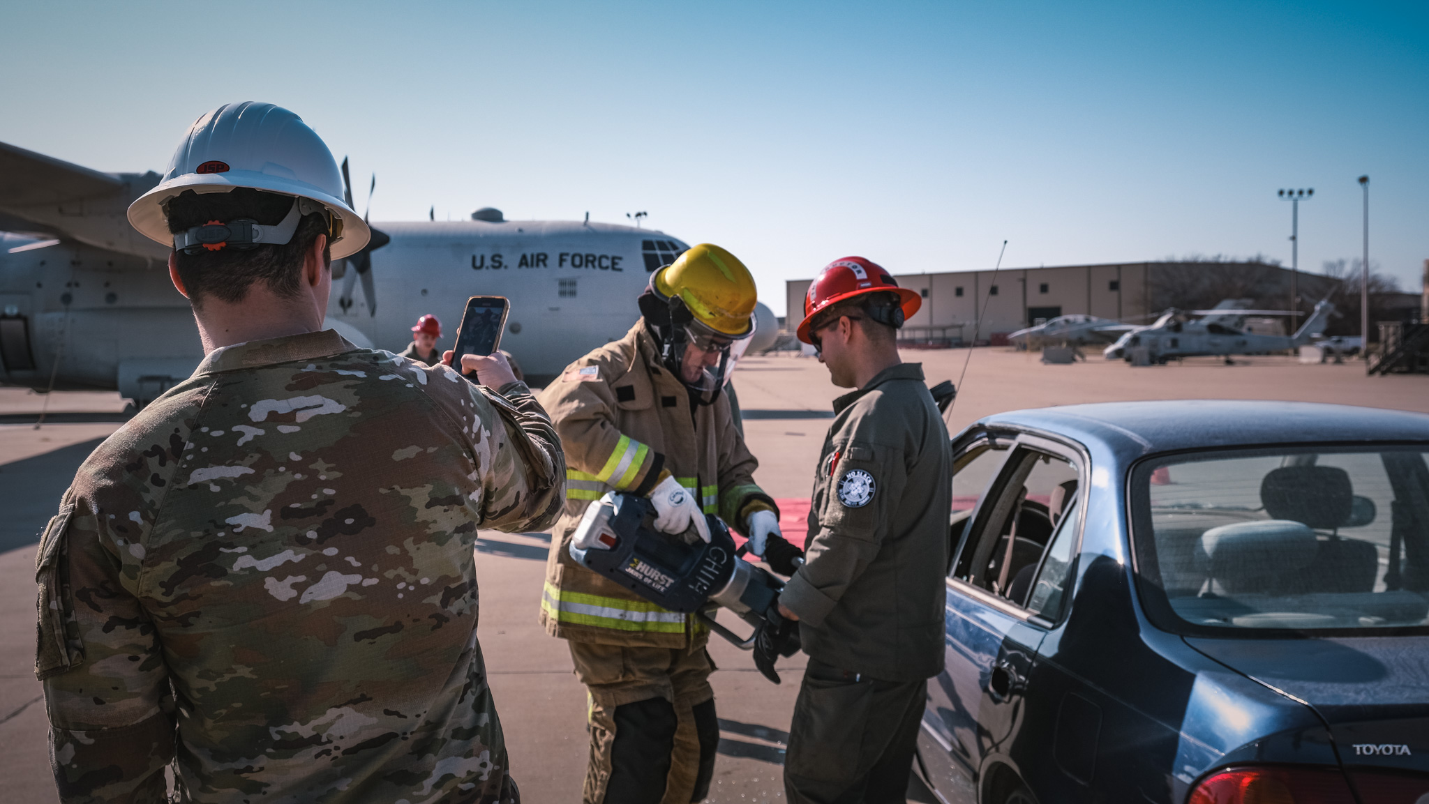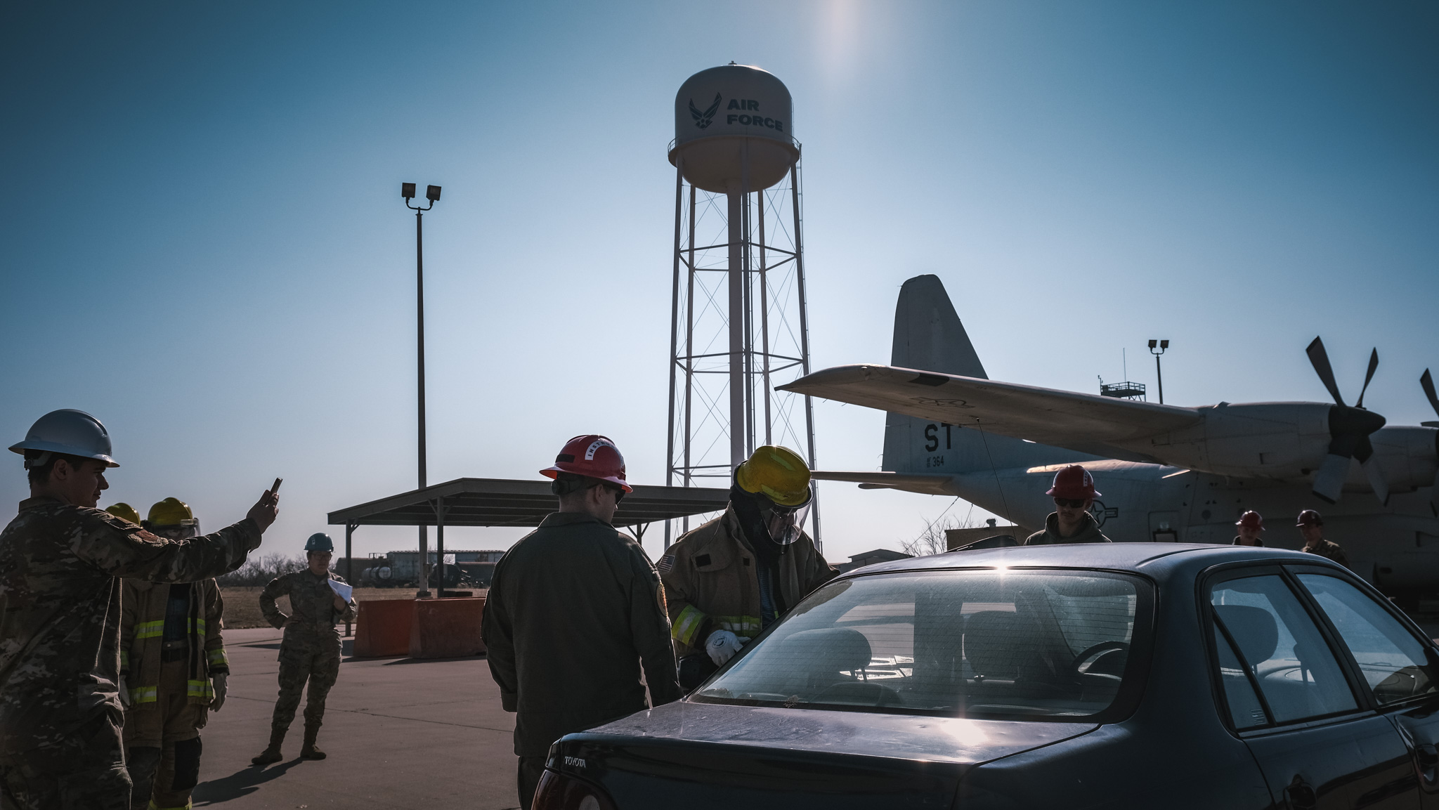 One of the highlights of the day was a live aircraft fire training exercise, where participants observed a simulated emergency response as firefighters tackled flames on a C-130 aircraft. Some honorary commanders even had the opportunity to assist in extinguishing the fire. Video of this can be found below.
