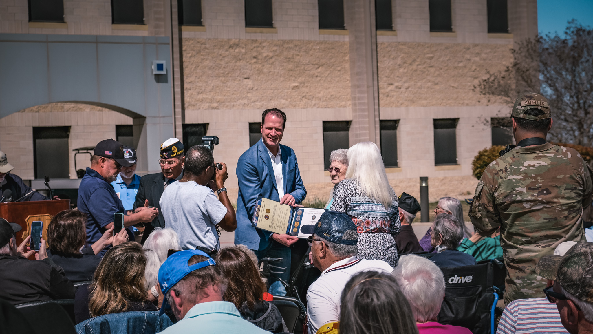 The ceremony included the presentation of commemorative lapel pins and certificates to Vietnam veterans, surviving spouses, and family members. The event was organized in partnership with the EC-47 History Site and featured recognition for individuals who traveled from across the U.S., including Hawaii, California, Indiana, and Massachusetts.